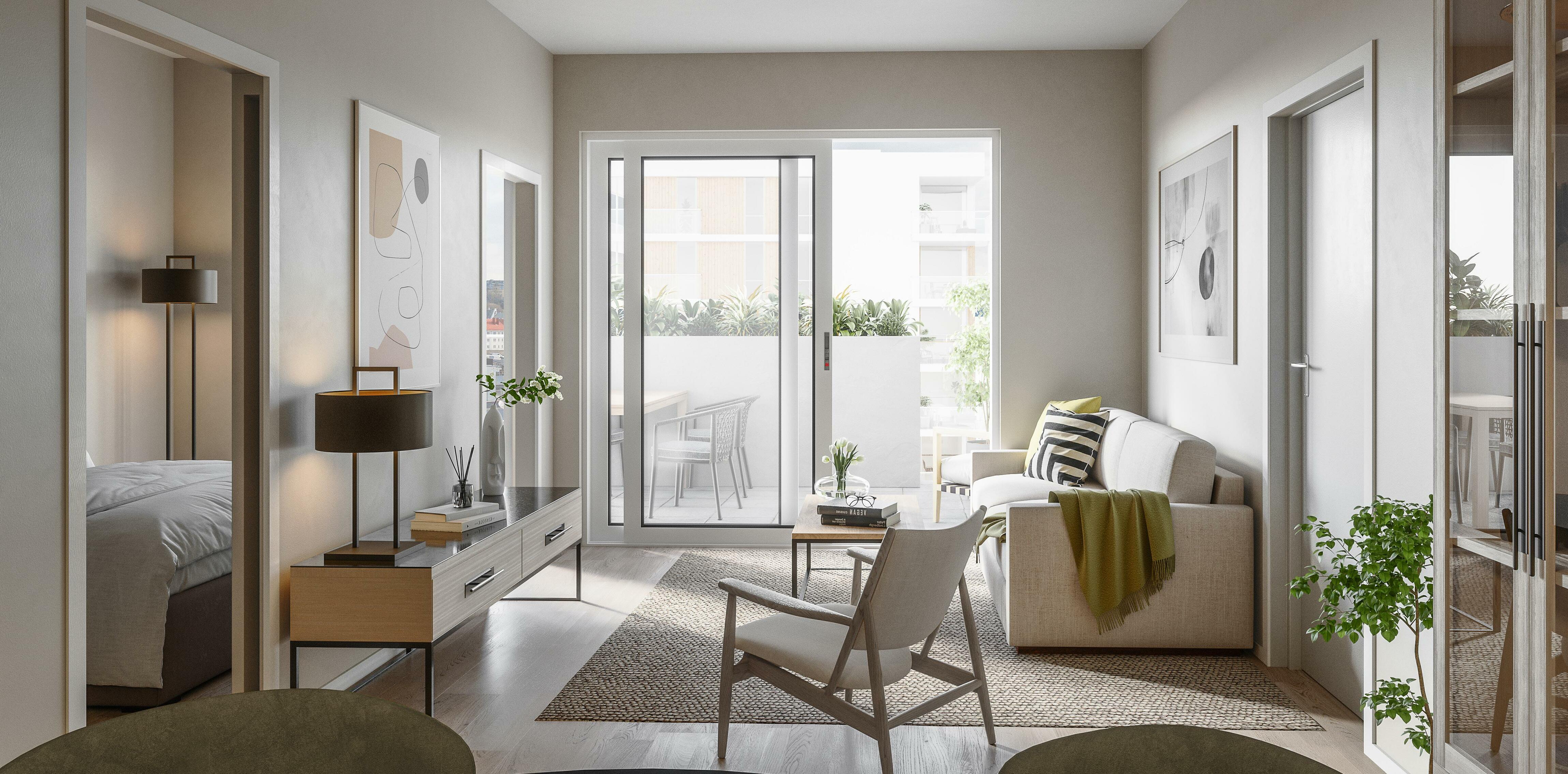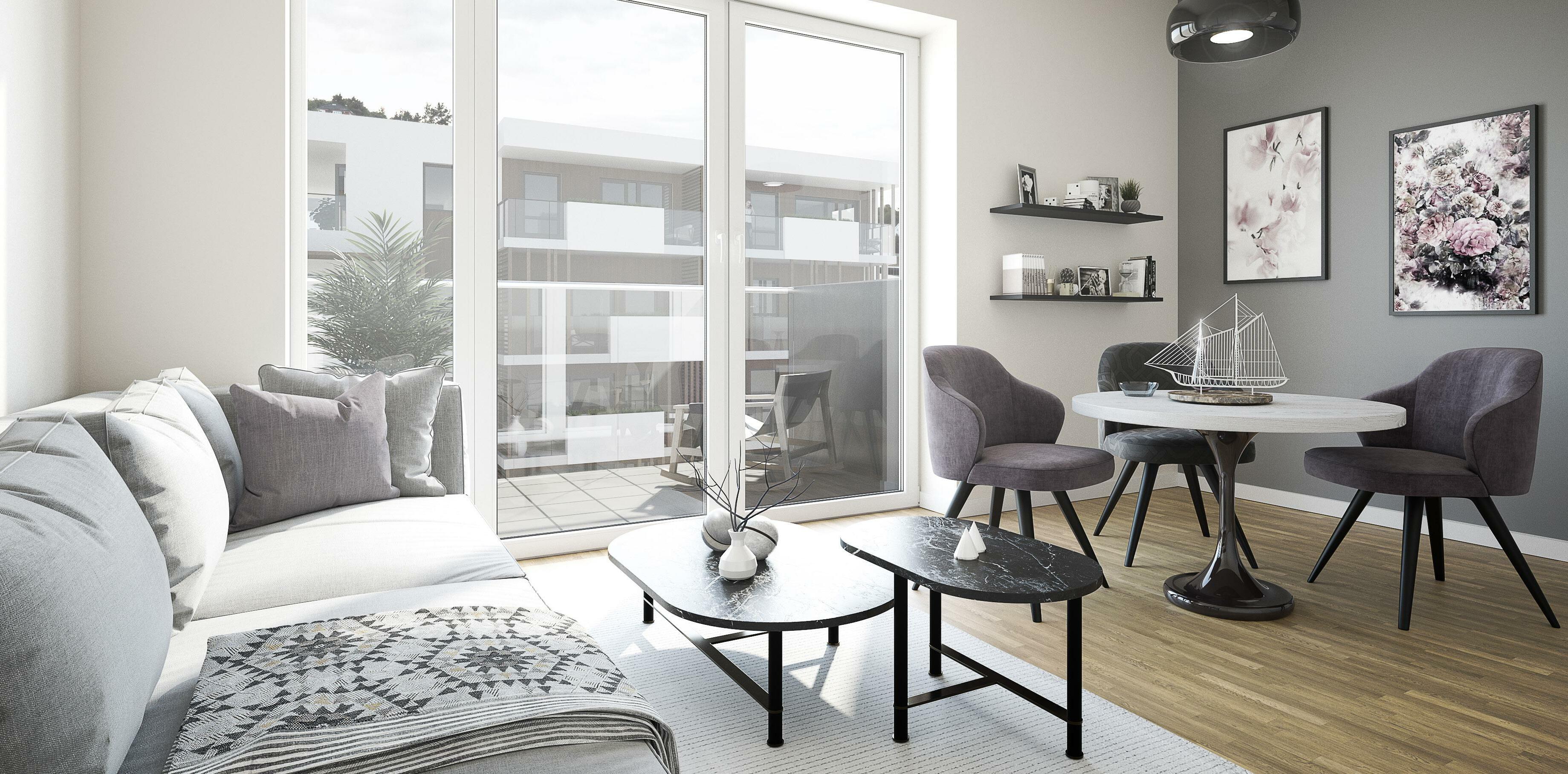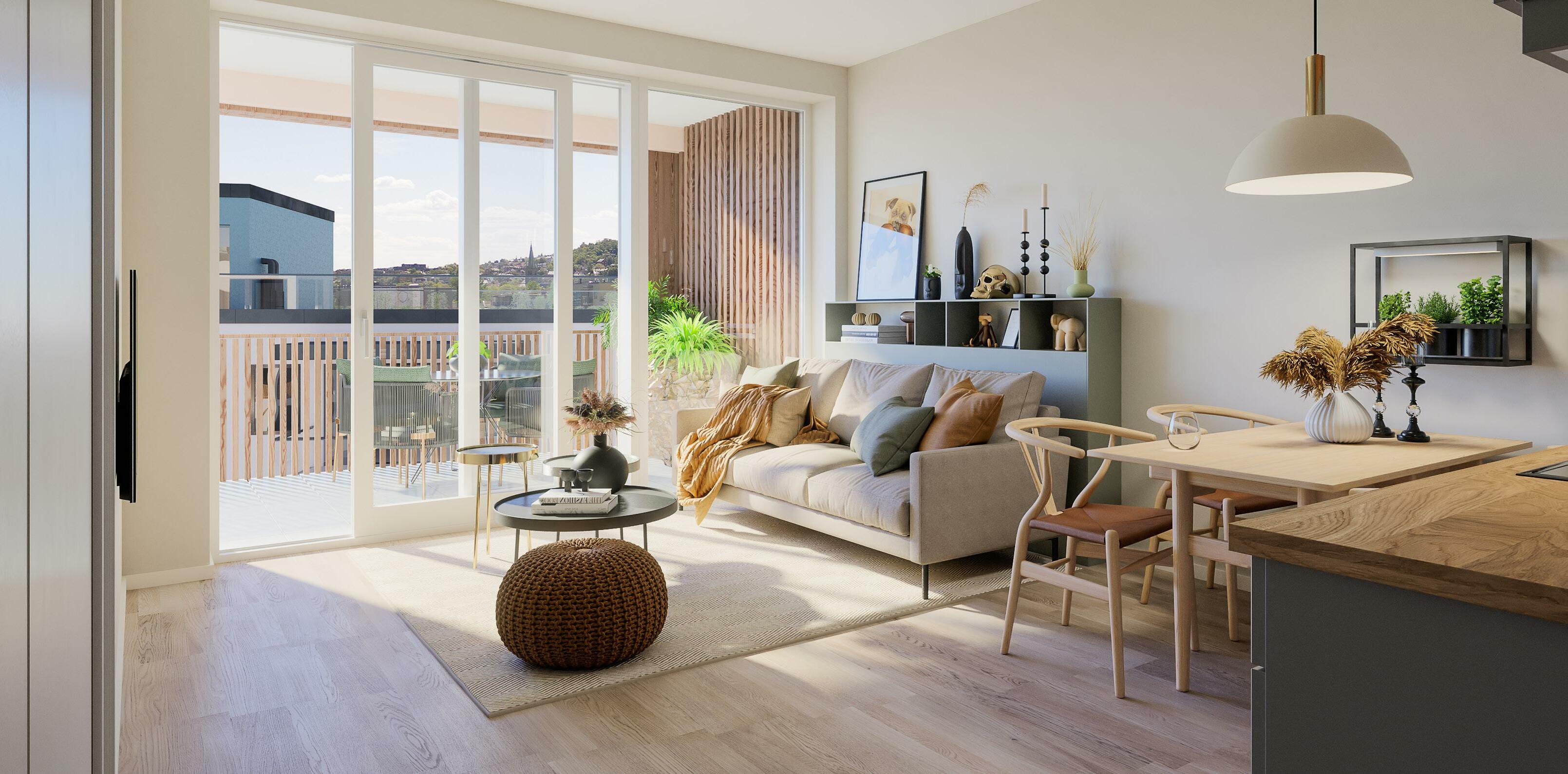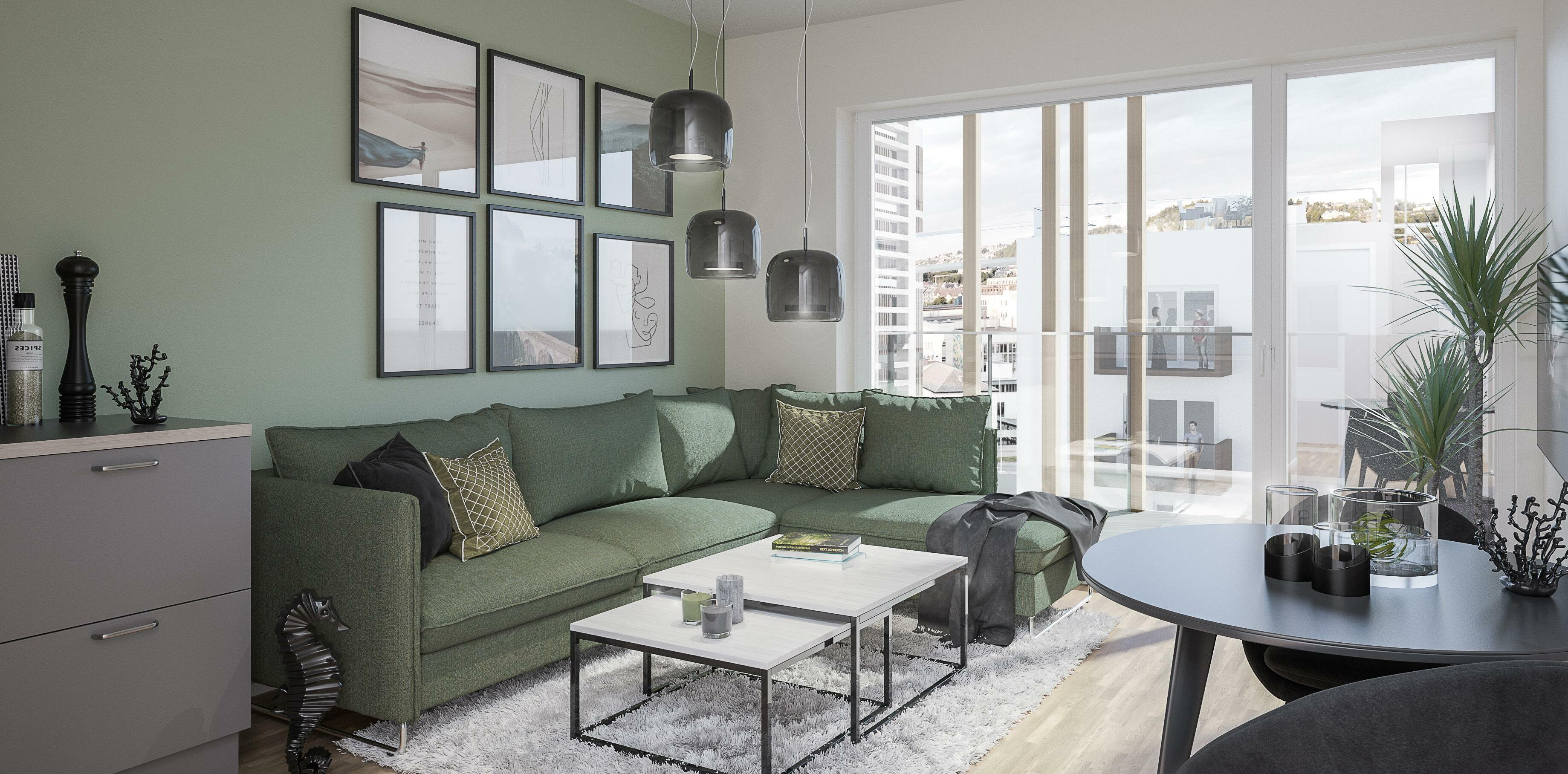 Leilighetene skal selvsagt gi deg den samme gode følelsen. Med smarte løsninger, vakre, materialer og mye variasjon ligger alt til rette for å lage deg ditt fristed. Store vinduer slipper naturlig lys inn i de romslige stuene.
