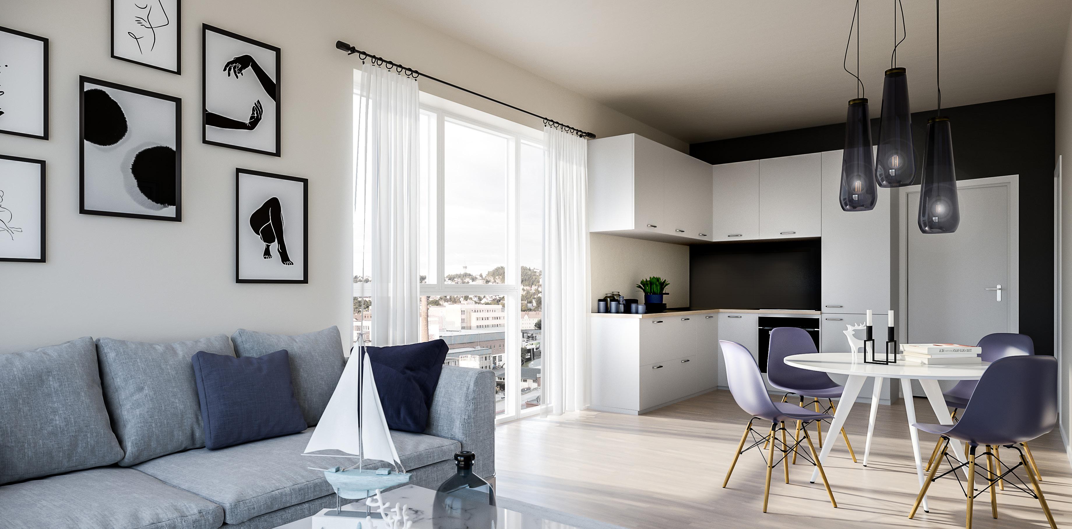 Kadetten Nyhavna byr på toppmoderne 2 og 3 roms leiligheter med smarte planløsninger og kvalitet i hver kvadratmeter.