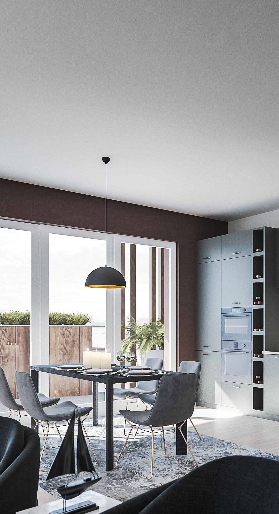 Og enestående beliggenhet fortjener enestående leiligheter. Her forenes gode løsninger, godt håndverk og urbanitet. Treverk puster liv i de moderne linjene. Beliggenheten, materialene og interiøret smelter sammen til det vi våger å kalle drømmeleiligheter. Og snart er de virkelighet.