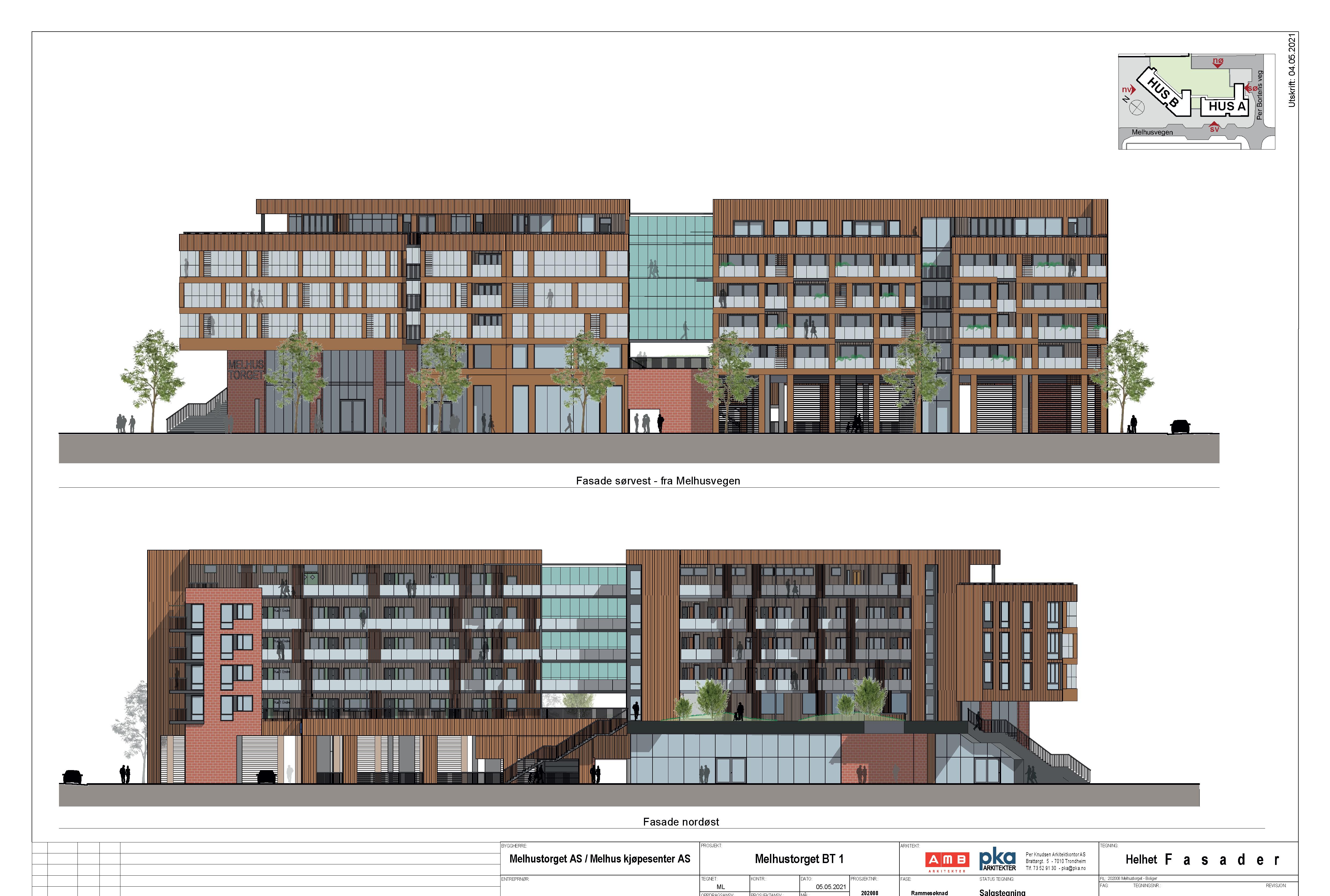 Når du bor på Melhustorget får du tilgang på det beste tilbudet av handel, servering, kulturarrangementer og yrende folkeliv. Det nye kjøpesenteret vil bli et fremtidsrettet handelssted med utadvendte fasader. Fasadene vil bli utført i tre, glass og tegl, kvalitesmaterialer som sammen gir vakre bygg.
