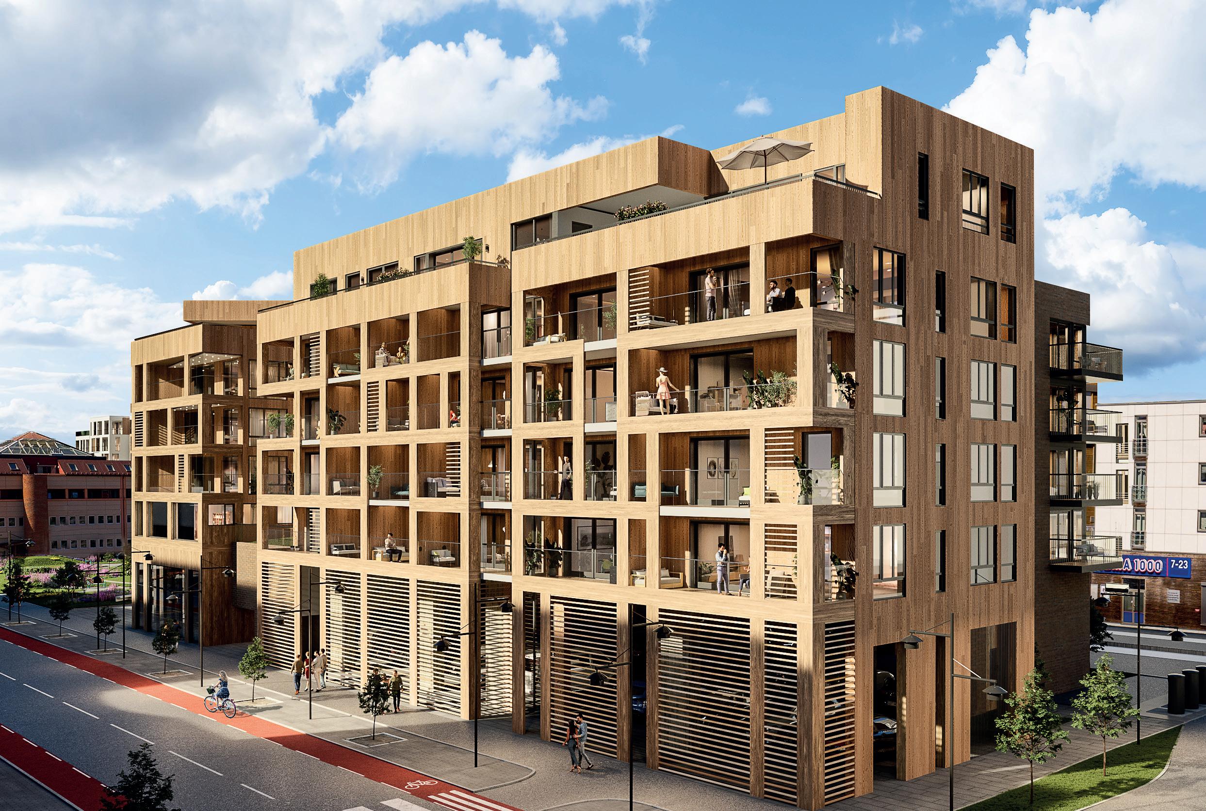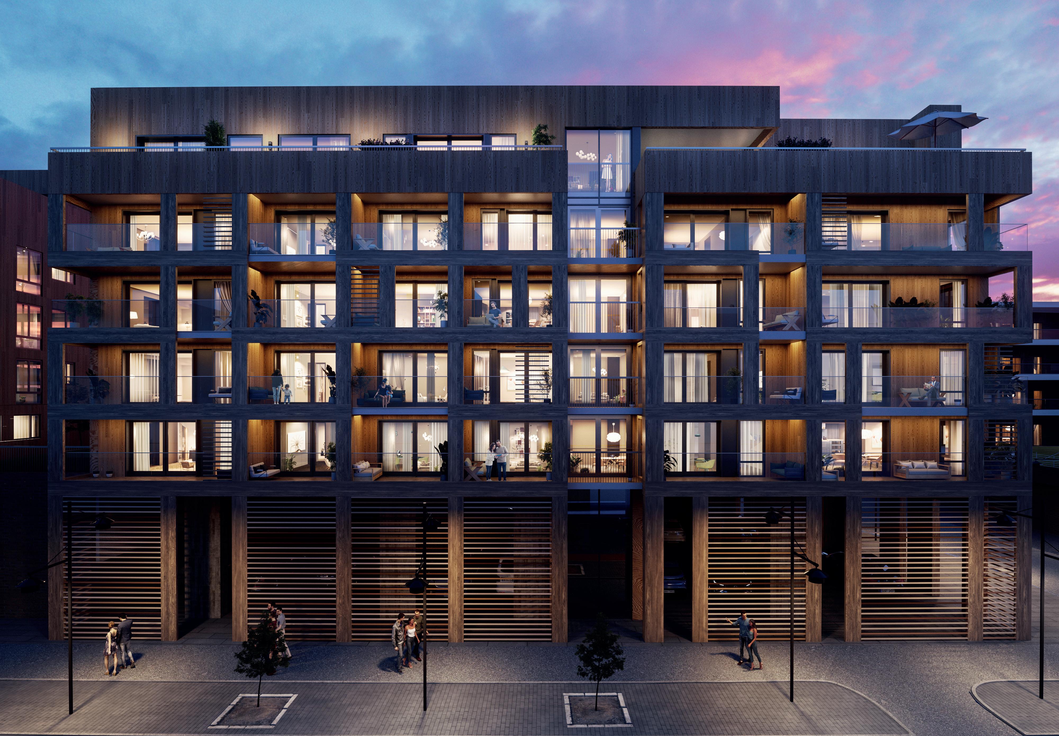 Moderne leiligheter på toppen av kjøpesenter med torg og takhage. Et handelssentrum med gode kollektivtilbud, kunst og kultur.