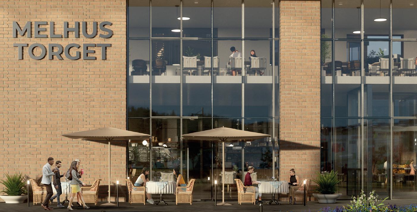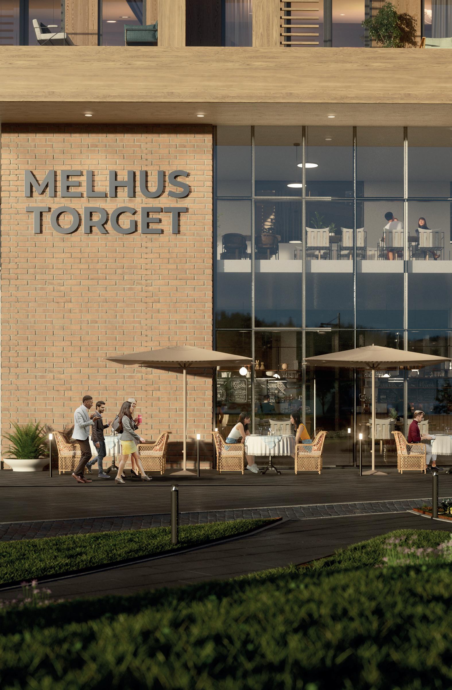 Når du bor på Melhustorget får du tilgang på det beste tilbudet av handel, servering, kulturarrangementer og yrende folkeliv. Det nye kjøpesenteret vil bli et fremtidsrettet handelssted med utadvendte fasader. Fasadene vil bli utført i tre, glass og tegl, kvalitesmaterialer som sammen gir vakre bygg.