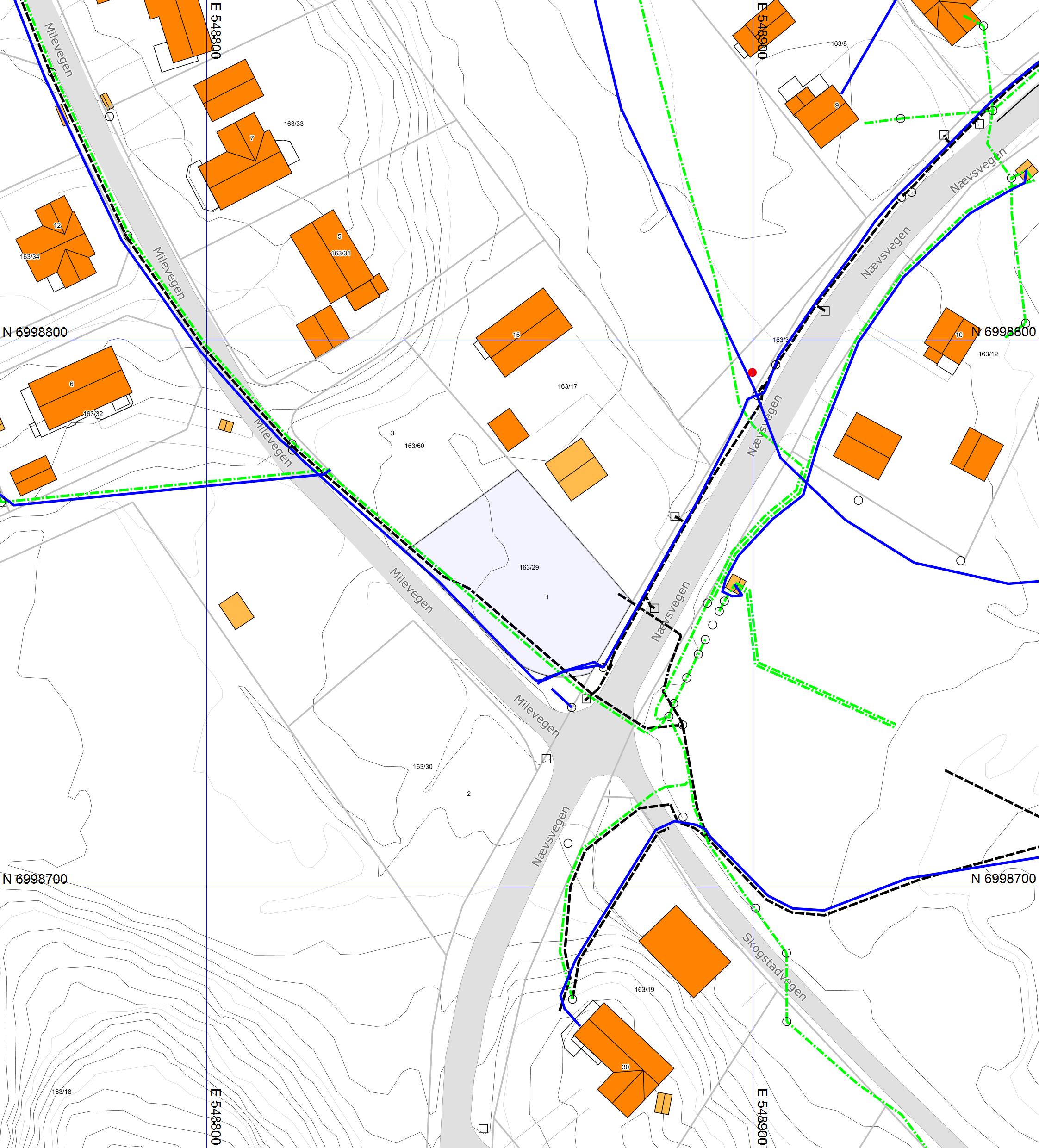 Kartet viser kommunale ledningstraseer (vann og avløp) der dette finnes. Private stikkledninger tegnes der disse er registrert. Informasjon hentes fra kommunens digitale ledningskartverk.