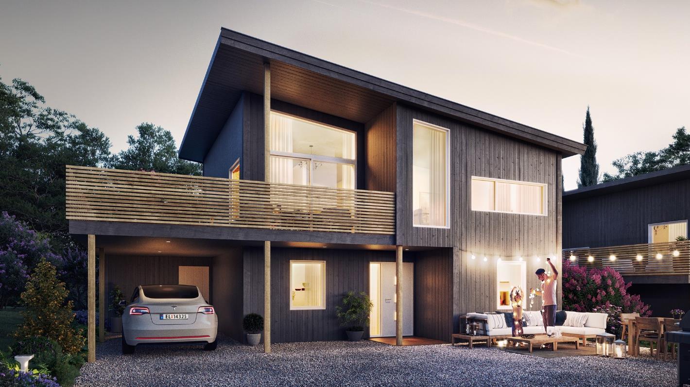 Her vil det bygges 4 moderne familieboliger over 2 plan med tidsriktige løsninger i boligfeltet på Gåsbakken. Boligene vil få et bruksareal på 127 kvm + carport. 1.etg består av bad, vaskerom, gang og 3 soverom. Oppe i 2.etg vil du ha en bod, soverom/ekstra tv-stue og ei åpen stue/kjøkken løsning på 47 kvm. Her vil du få ekstra god takhøyde, rikelig med vindusflater som gir godt med lys inn i boligen, samt et ildsted som sikrer den lune god atmosfære. Fra stue/kjøkken har du utgang til en 38 kvm stor terrasse som ligger over carporten.