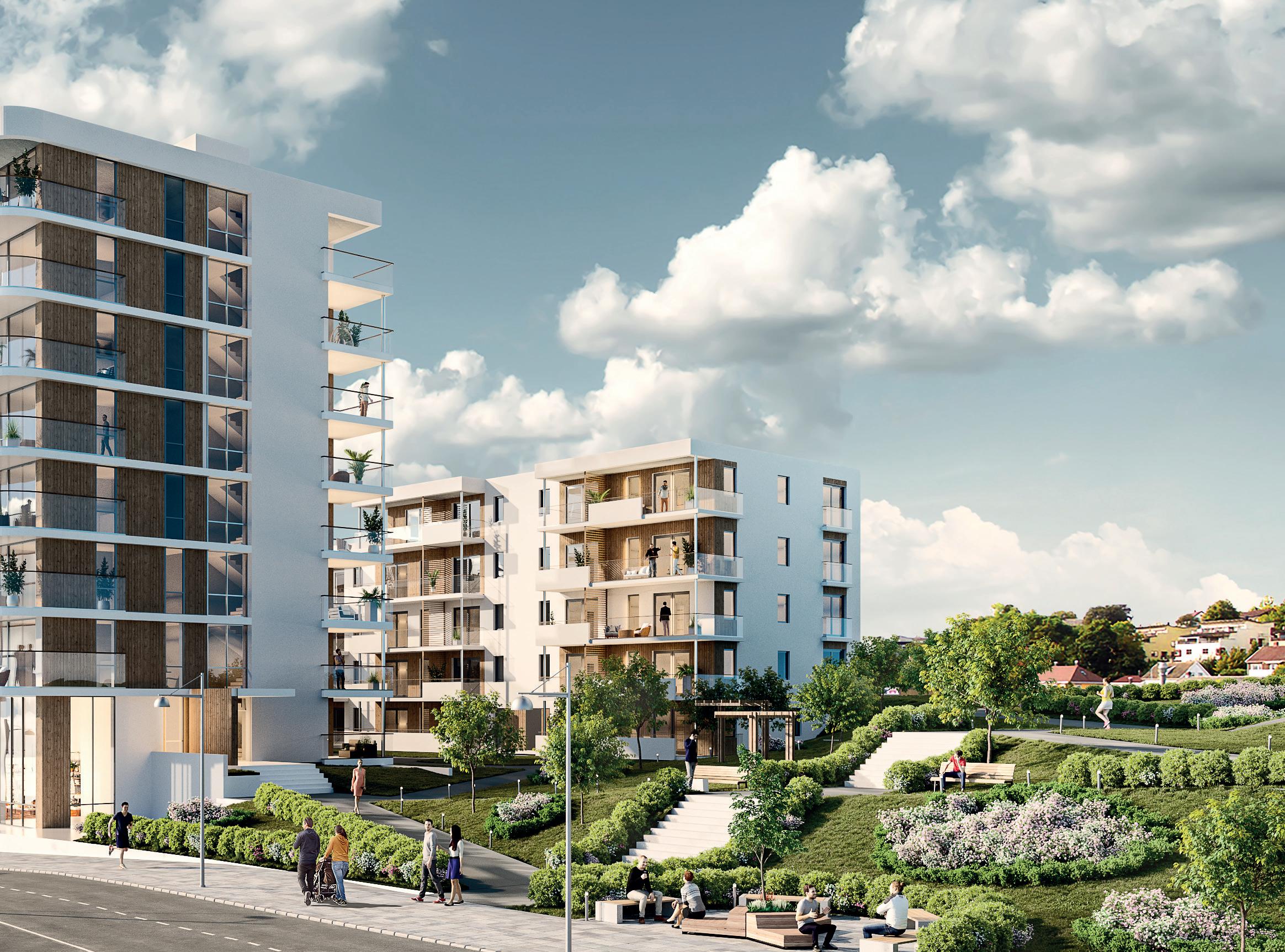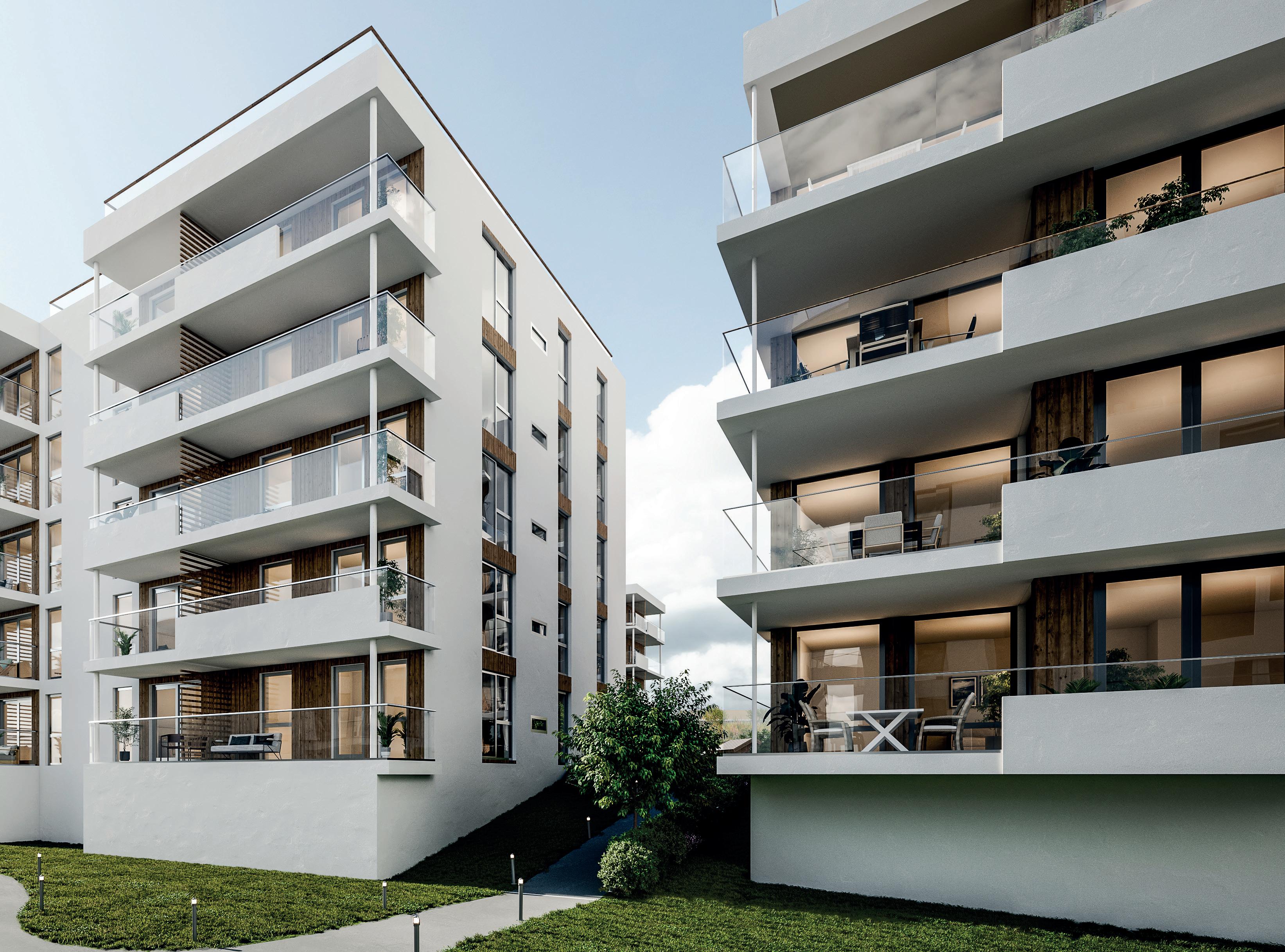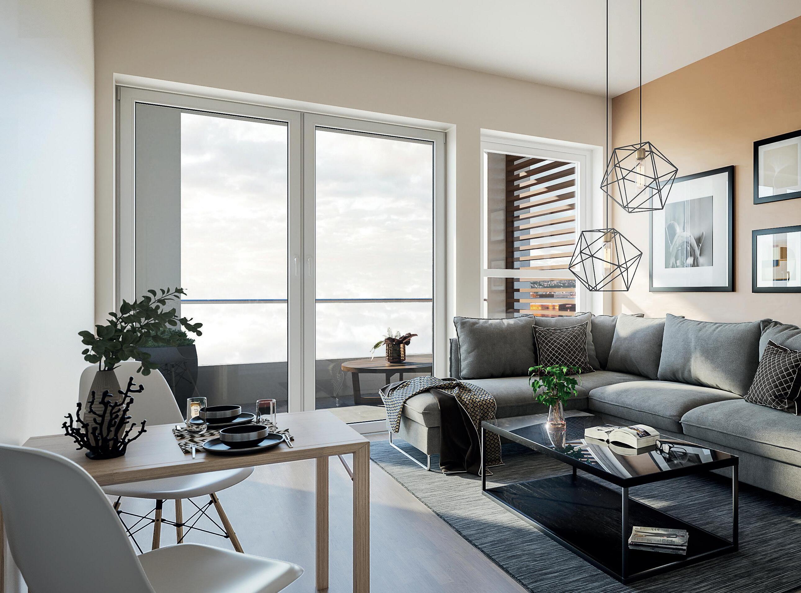 Alle bilder er av illustrativ karakter, endringer vil forekomme. Materialvalg og farger kan avvike og må evnt. bestilles som tilvalg om disse avviker fra standard leveranse angitt leveransebeskrivelsen vedlagt. Utsikt, balkongløsning, rekkverk og vindusløsning er kun illustrativ og vil variere fra etasje til etasje og bygg til bygg. Kjøkkenløsning kan avvike. Se etasjeplaner og kjøkkentegninger vedlagt i den komplette leveransebeskrivelse.