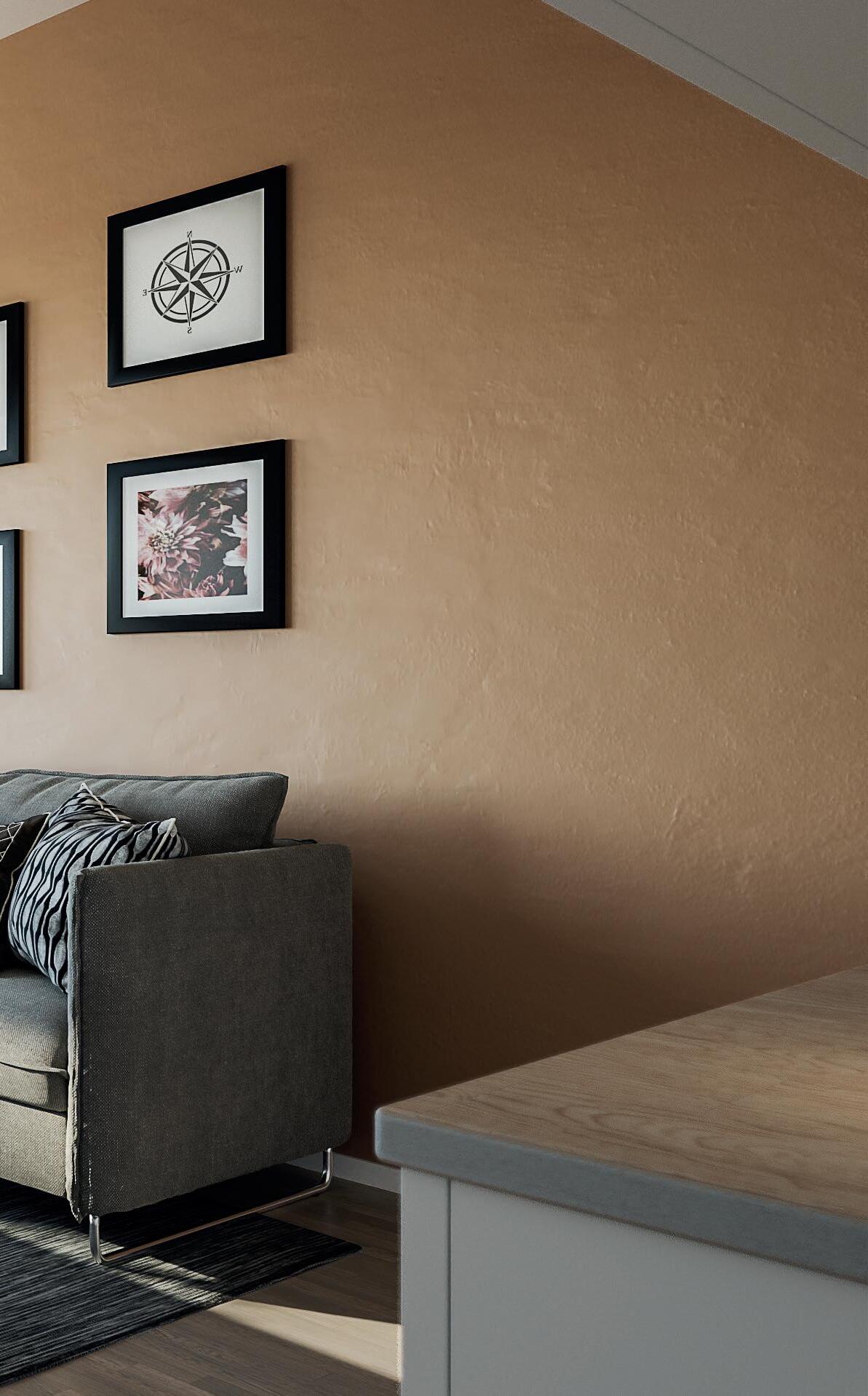 Veggflater i beboelsesrom leveres sparklet og malt. Alle malte vegger vil ha en malingsforsterker(tapet). Veggfarge NCS 0502 Y. Vegger på våtrom leveres med fliser.