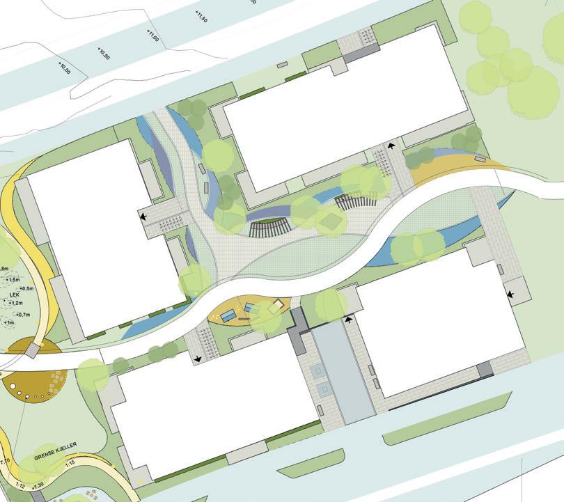 Det felles kjelleranlegget er i all hovedsak et garasjeanlegg, men det skal også romme avdeling med sportsboder, nødvendig driftstekniske rom og gi adkomst/plass til heis- og trappeforbindelser til leilighetsbyggene. Leverandør av kabel-tv/data vil kunne ha eget rom (noderom)for sitt utstyr som leverandør skal ha tilgang til for nødvendig drift.