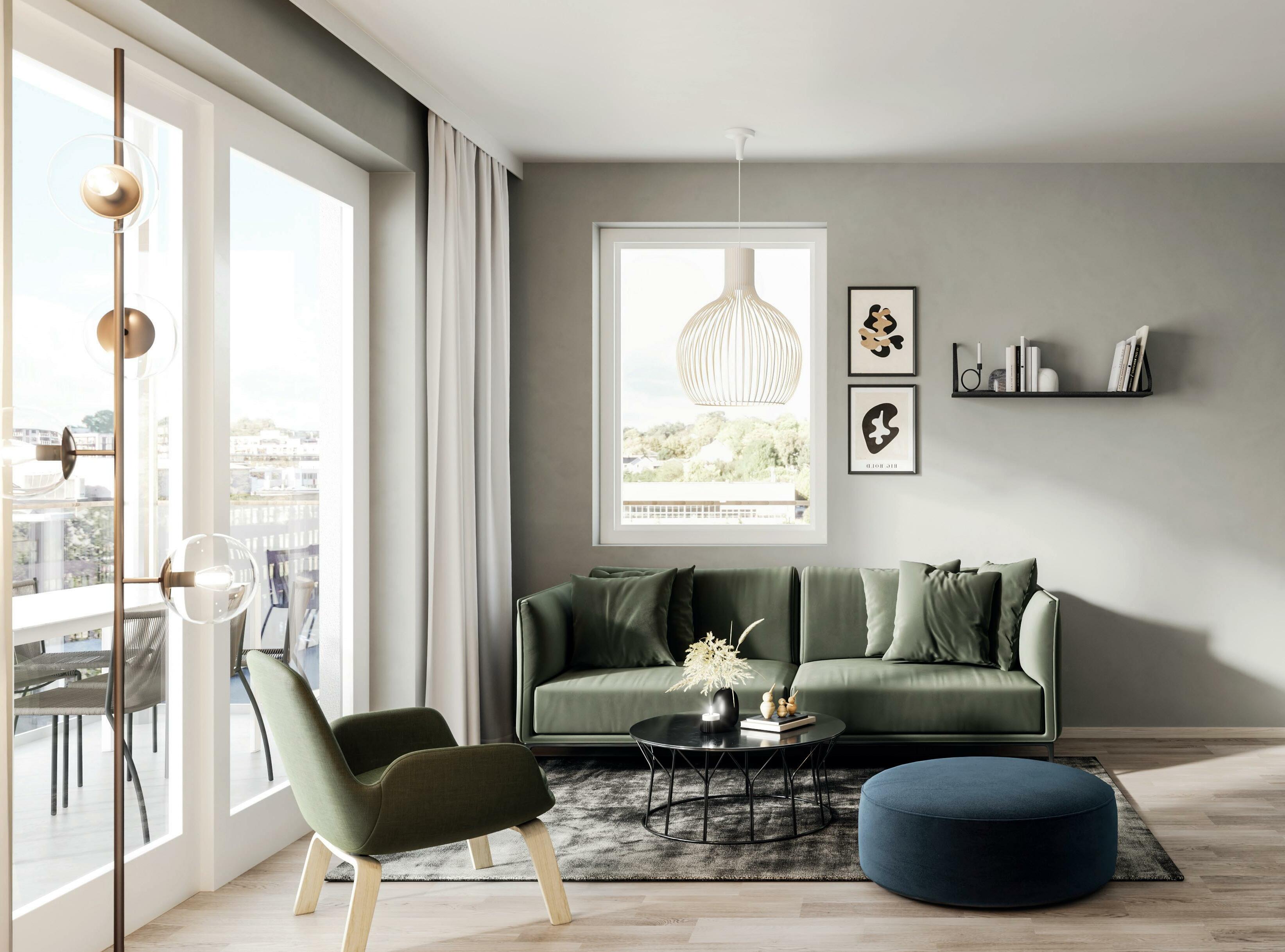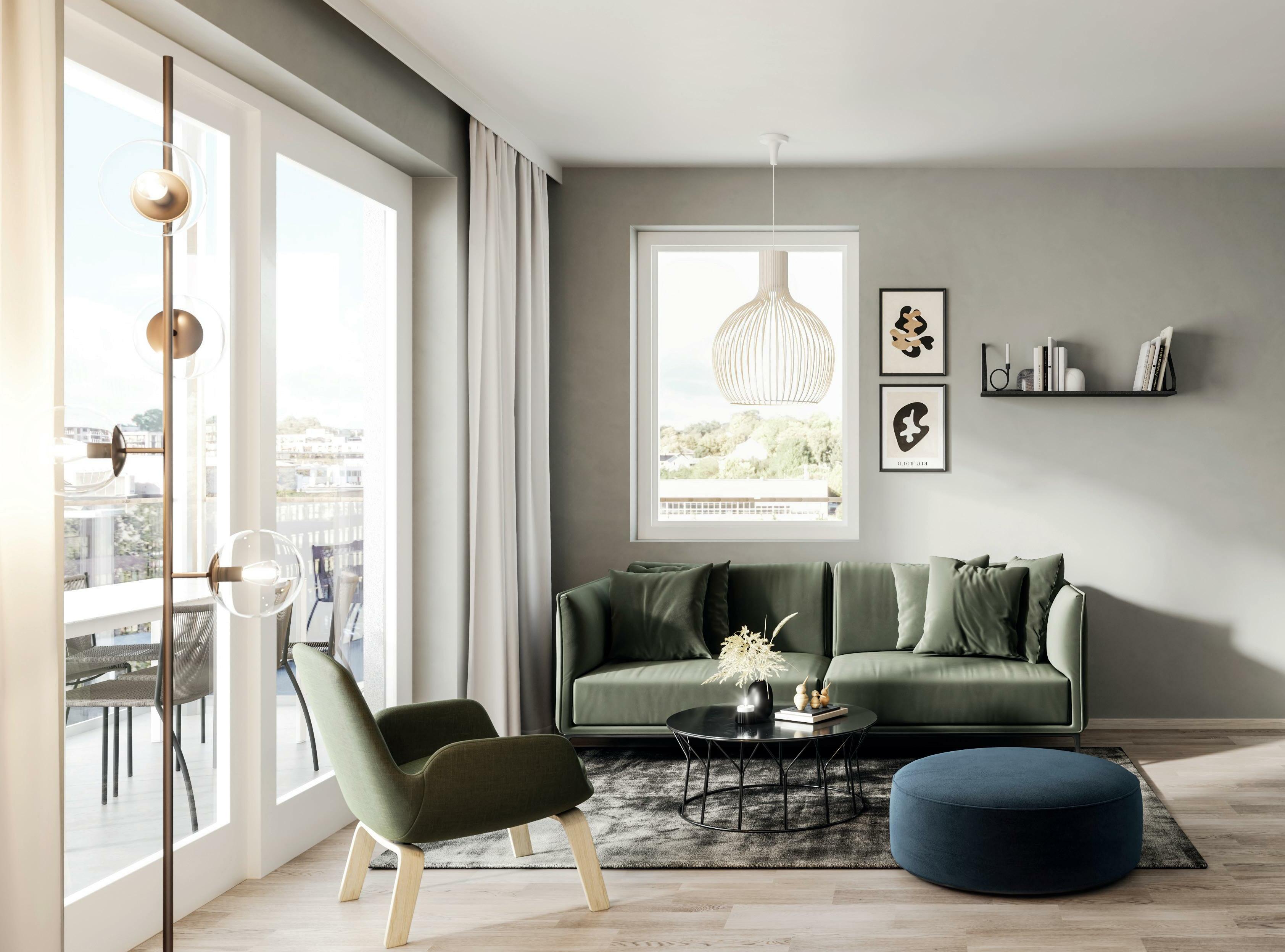 Alle bilder er av illustrativ karakter, endringer vil forekomme. Materialvalg og farger kan avvike og må evnt. bestilles som tilvalg om disse avviker fra standard leveranse angitt i leveransebeskrivelsen vedlagt. Utsikt, balkongløsning, rekkverk og vindusløsning er kun illustrativ og vil variere fra etasje til etasje og bygg til bygg. Kjøkkenløsning kan avvike. Se etasjeplaner og kjøkkentegninger vedlagt i den komplette leveransebeskrivelse.