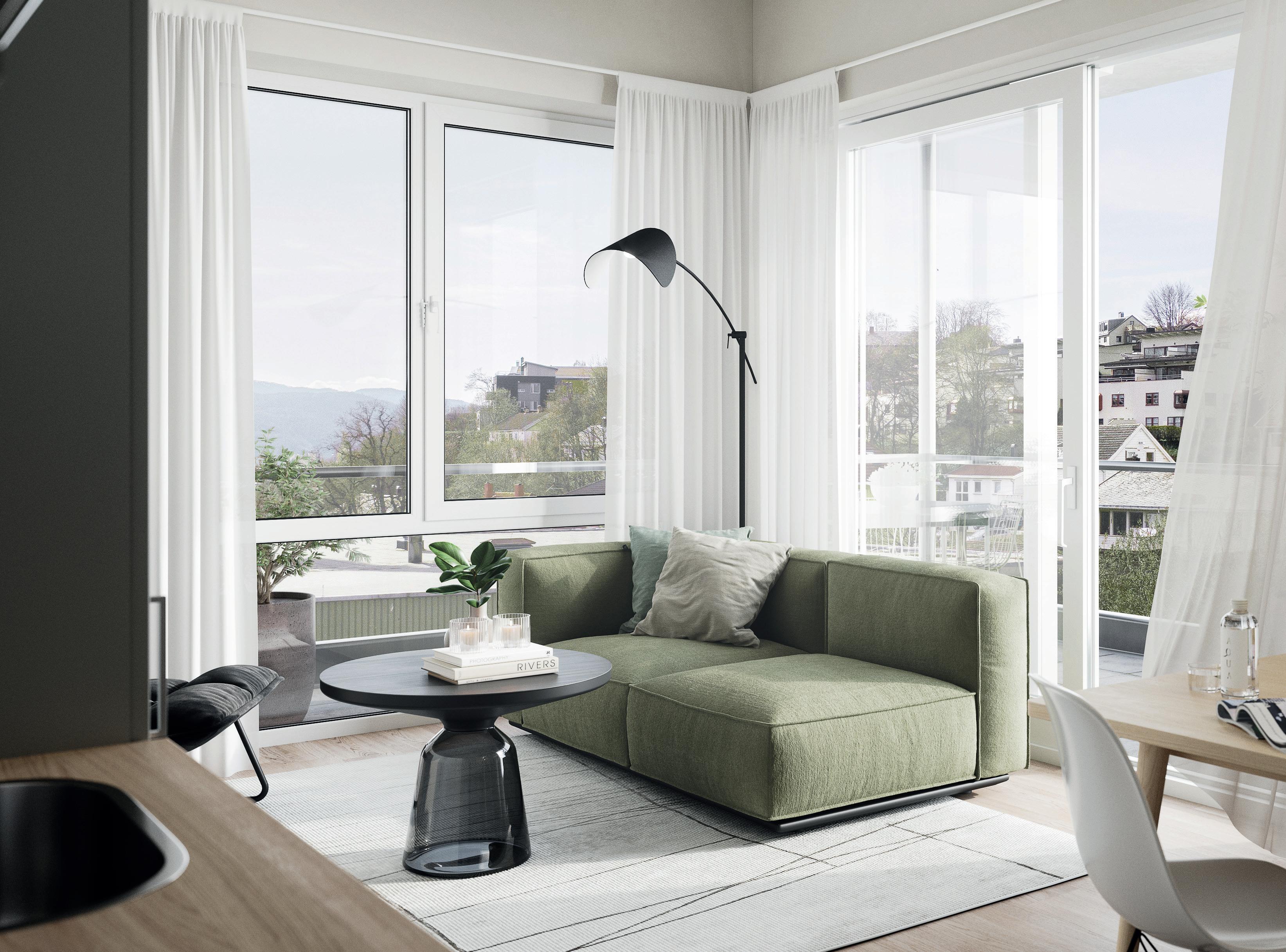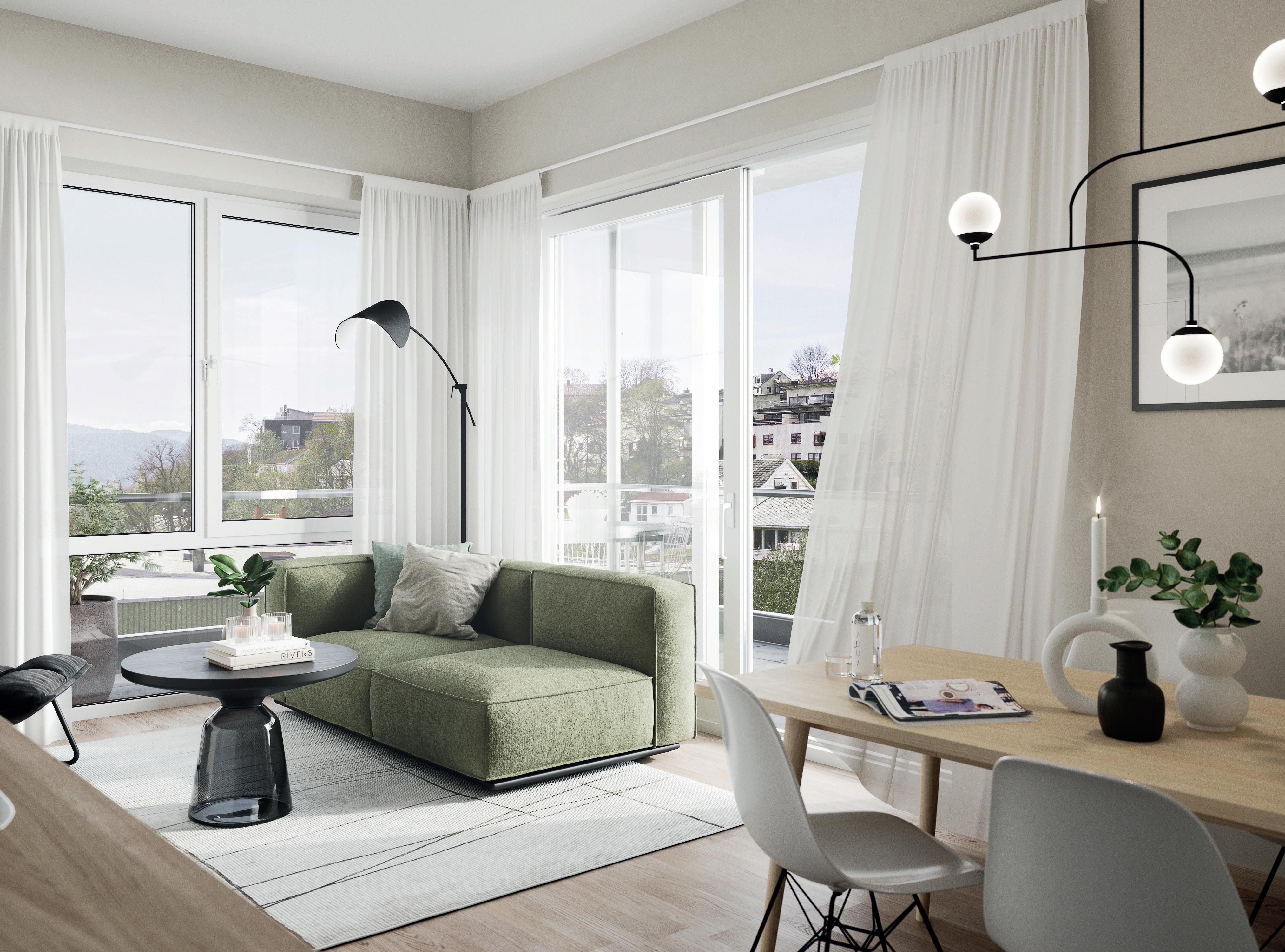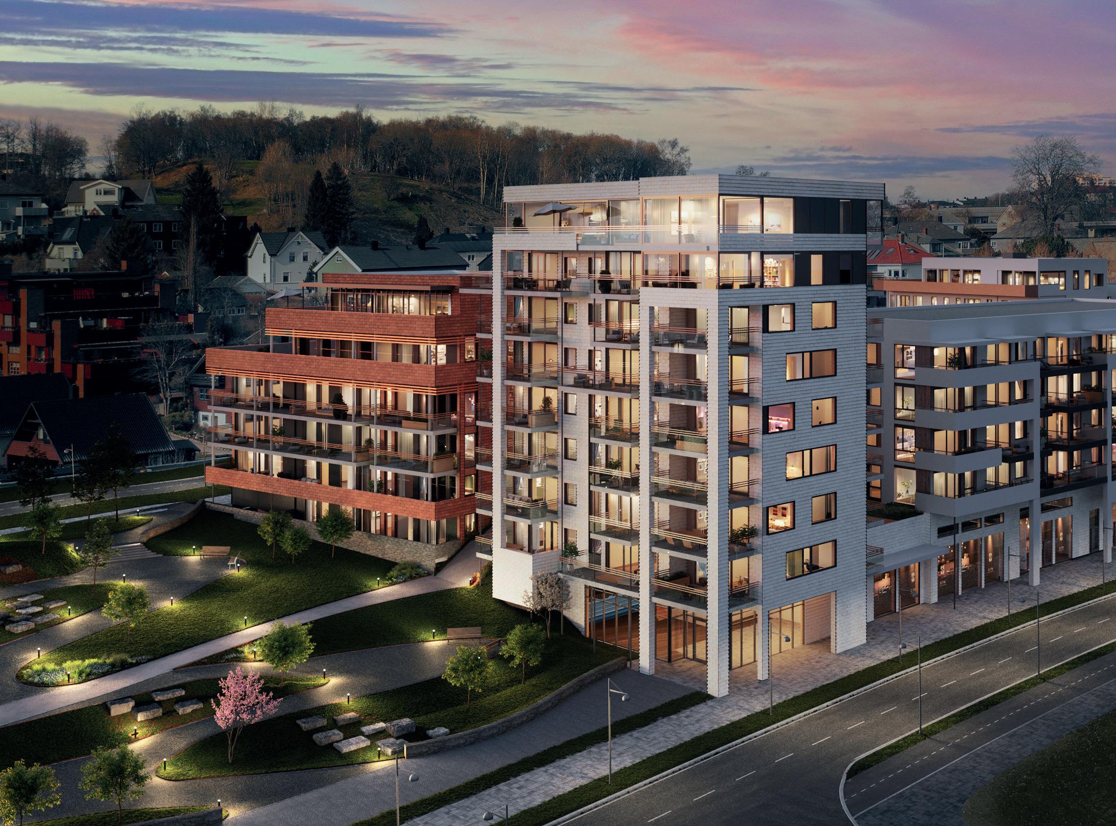 Alle bilder er av illustrativ karakter, endringer vil forekomme. Materialvalg og farger kan avvike og må evnt. bestilles som tilvalg om disse avviker fra standard leveranse angitt leveransebeskrivelsen vedlagt. Utsikt, balkongløsning, rekkverk og vindusløsning er kun illustrativ og vil variere fra etasje til etasje og bygg til bygg. Kjøkkenløsning kan avvike. Se etasjeplaner og kjøkkentegninger vedlagt i den komplette leveransebeskrivelse.