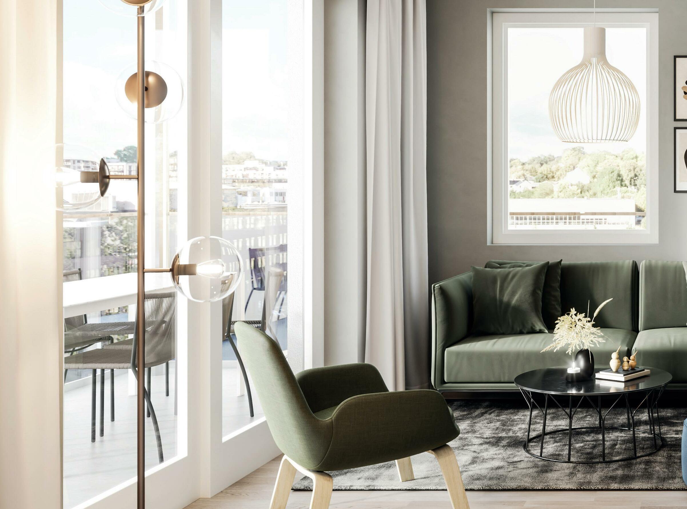 Alle bilder er av illustrativ karakter, endringer vil forekomme. Materialvalg og farger kan avvike og må evnt. bestilles som tilvalg om disse avviker fra standard leveranse angitt i leveransebeskrivelsen vedlagt. Utsikt, balkongløsning, rekkverk og vindusløsning er kun illustrativ og vil variere fra etasje til etasje og bygg til bygg. Kjøkkenløsning kan avvike. Se etasjeplaner og kjøkkentegninger vedlagt i den komplette leveransebeskrivelse.