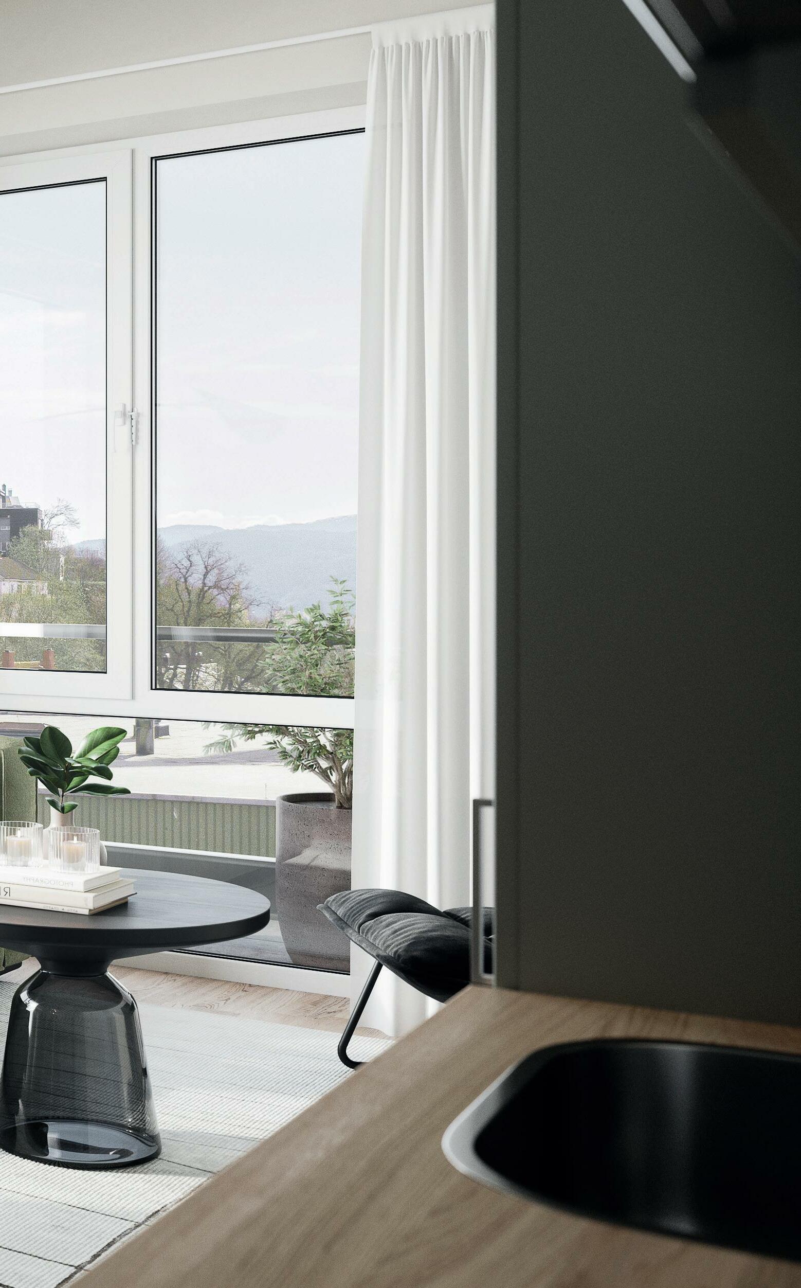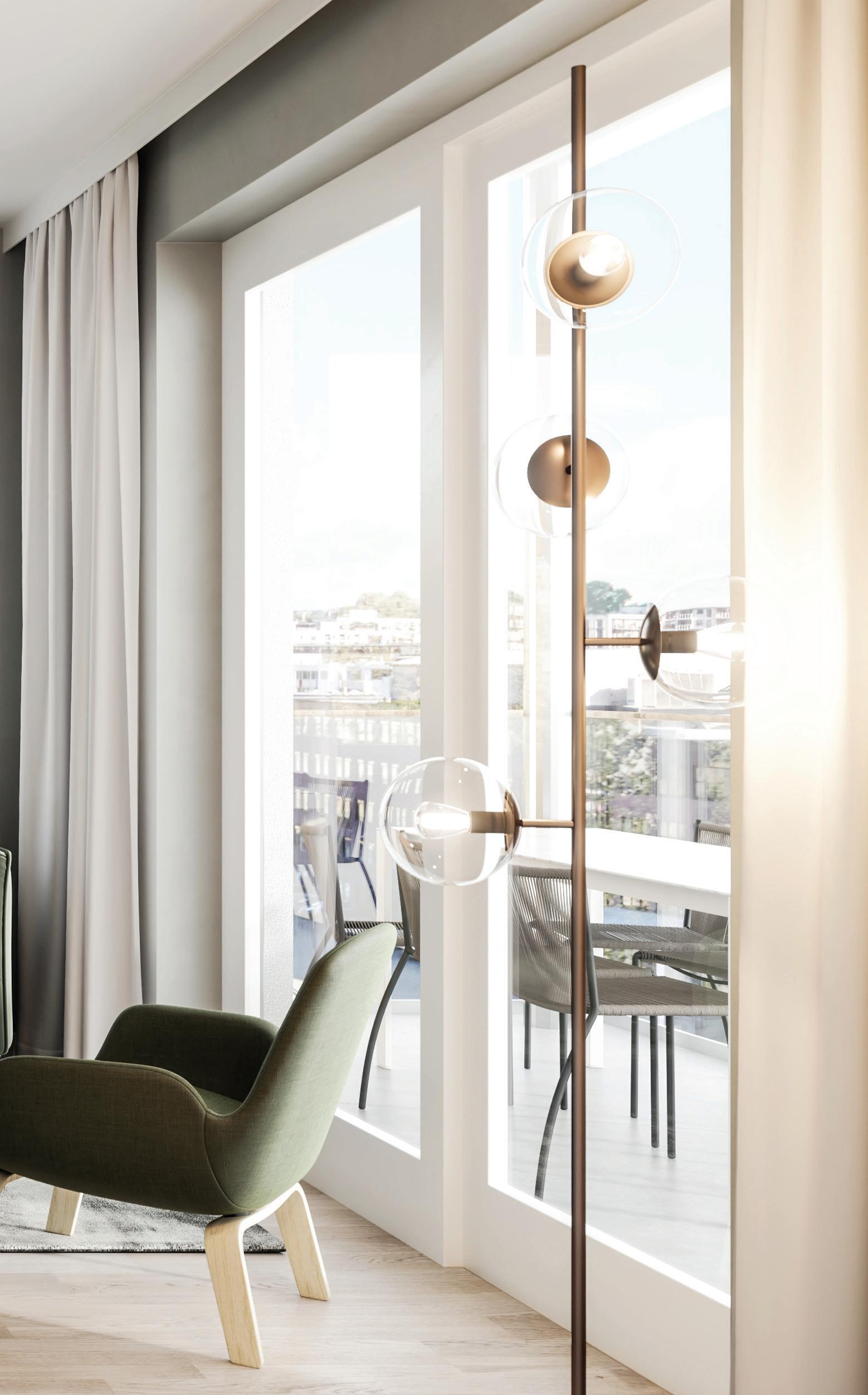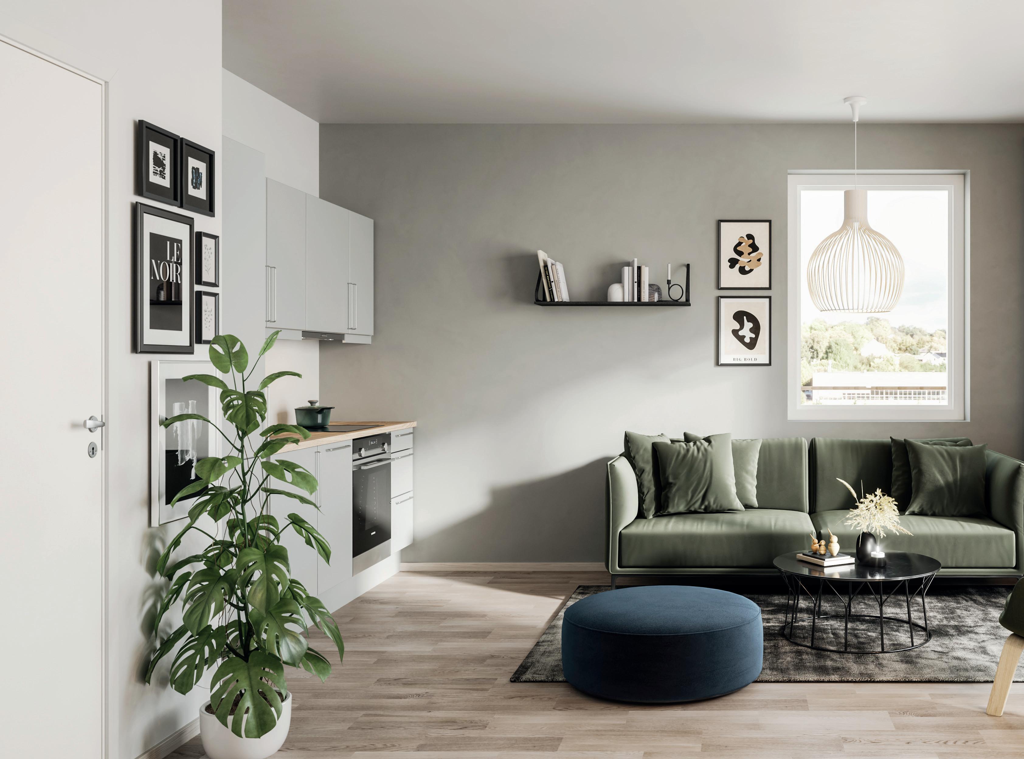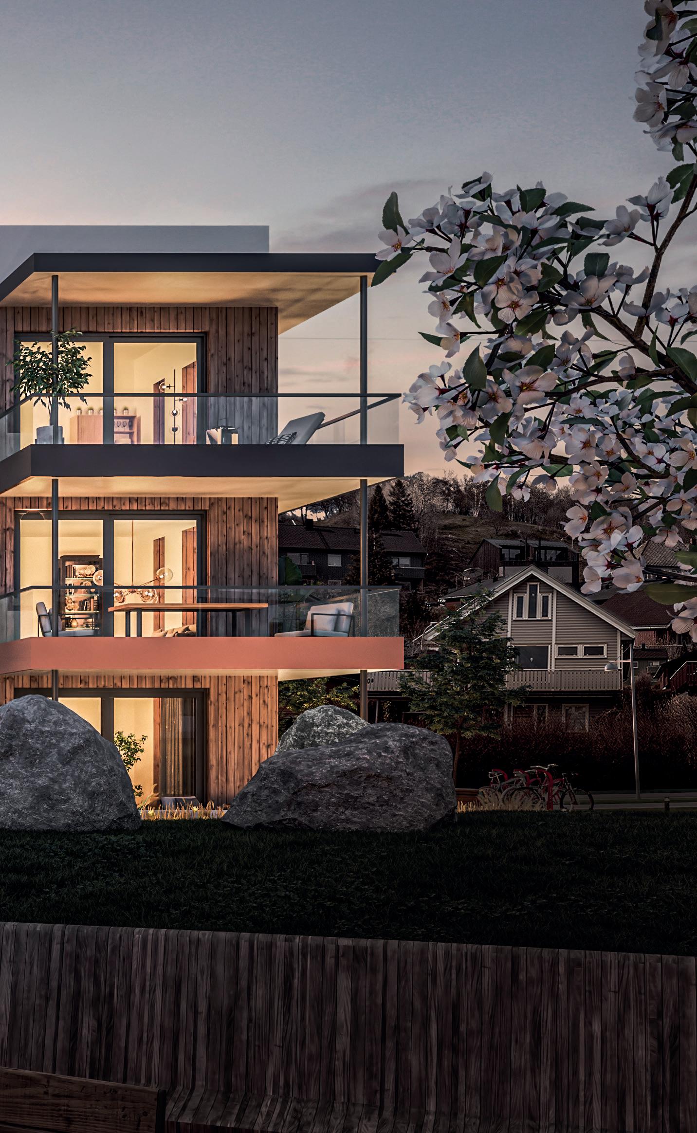 Alle bilder er av illustrativ karakter, endringer vil forekomme. Materialvalg og farger kan avvike og må evnt. bestilles som tilvalg om disse avviker fra standard leveranse angitt leveransebeskrivelsen vedlagt. Utsikt, balkongløsning, rekkverk og vindusløsning er kun illustrativ og vil variere fra etasje til etasje og bygg til bygg. Kjøkkenløsning kan avvike. Se etasjeplaner og kjøkkentegninger vedlagt i den komplette leveransebeskrivelse.