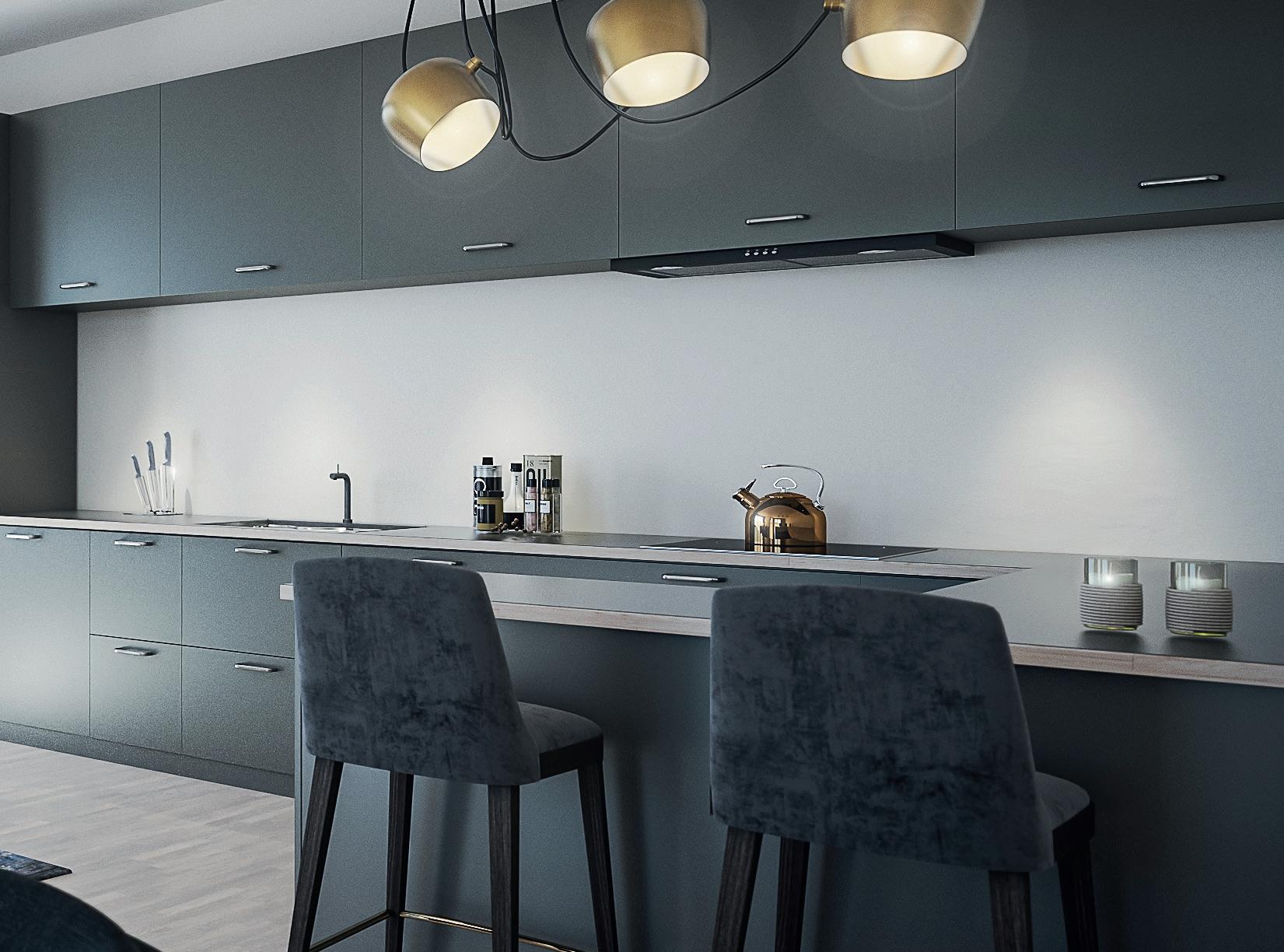På kjøkken leveres det gips på veggen mellom overskap og underskap.
