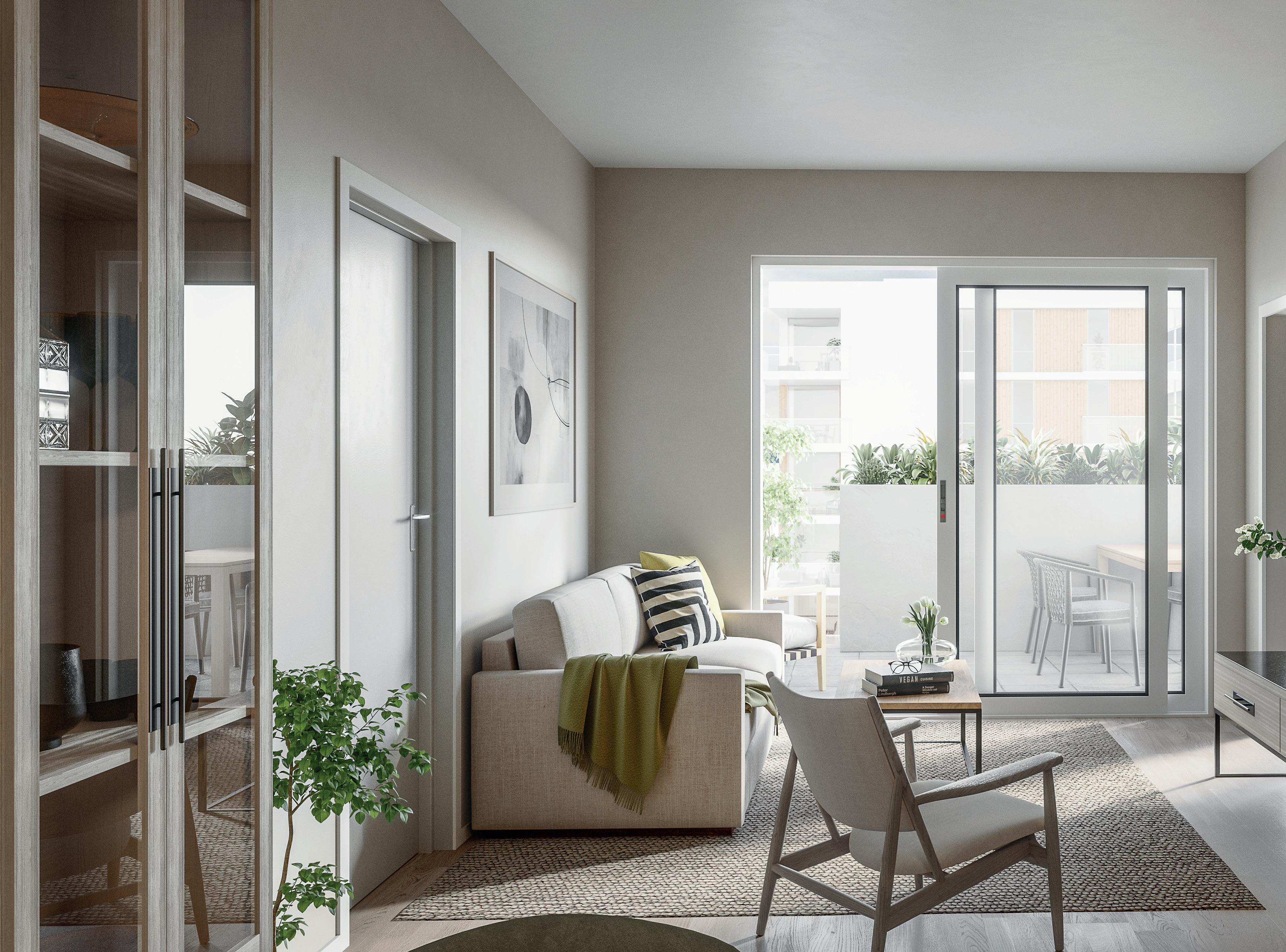 Alle bilder er av illustrativ karakter, endringer vil forekomme. Materialvalg og farger kan avvike og må evnt. bestilles som tilvalg om disse avviker fra standard leveranse angitt i leveransebeskrivelsen vedlagt. Utsikt, balkongløsning, rekkverk og vindusløsning er kun illustrativ og vil variere fra etasje til etasje og bygg til bygg. Kjøkkenløsning kan avvike. Se etasjeplaner og kjøkkentegninger vedlagt i den komplette leveransebeskrivelse.