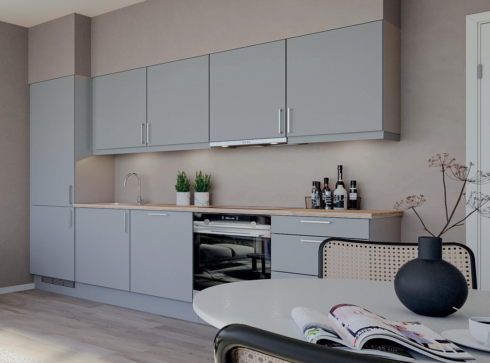 Alle bilder er av illustrativ karakter, endringer vil forekomme. Materialvalg og farger kan avvike og må evnt. bestilles som tilvalg om disse avviker fra standard leveranse angitt leveransebeskrivelsen vedlagt. Utsikt, balkongløsning, rekkverk og vindusløsning er kun illustrativ og vil variere fra etasje til etasje og bygg til bygg. Kjøkkenløsning kan avvike. Se etasjeplaner og kjøkkentegninger vedlagt i den komplette leveransebeskrivelse.