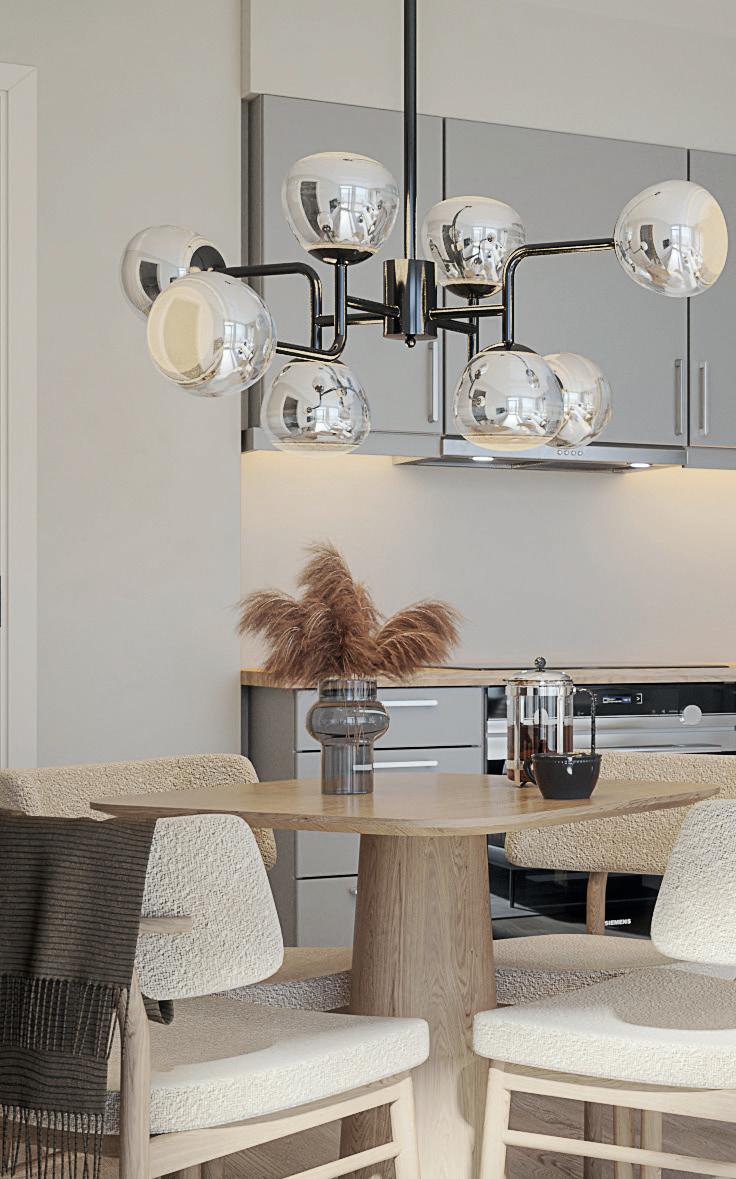 HTH kjøkken har fått fronter i grå farge. Gulv i utførelse Tarkett Sierra Oak Sand. Bad har fått regndusj fra Grohe og servantinnredning i sort eik finer.