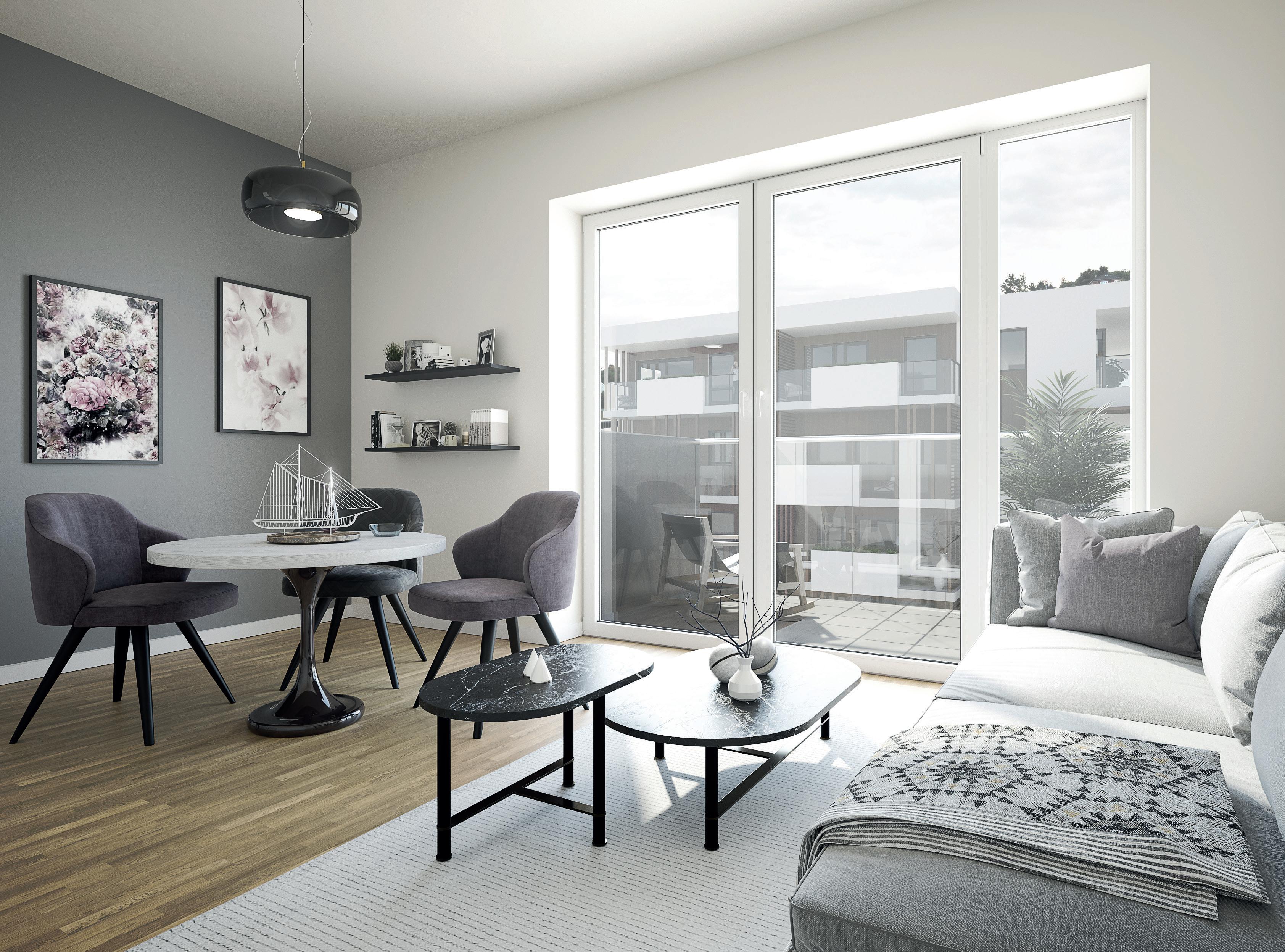 Alle bilder er av illustrativ karakter, endringer vil forekomme. Materialvalg og farger kan avvike og må evnt. bestilles som tilvalg om disse avviker fra standard leveranse angitt leveransebeskrivelsen vedlagt. Utsikt, balkongløsning, rekkverk og vindusløsning er kun illustrativ og vil variere fra etasje til etasje og bygg til bygg. Kjøkkenløsning kan avvike. Se etasjeplaner og kjøkkentegninger vedlagt i den komplette leveransebeskrivelse.