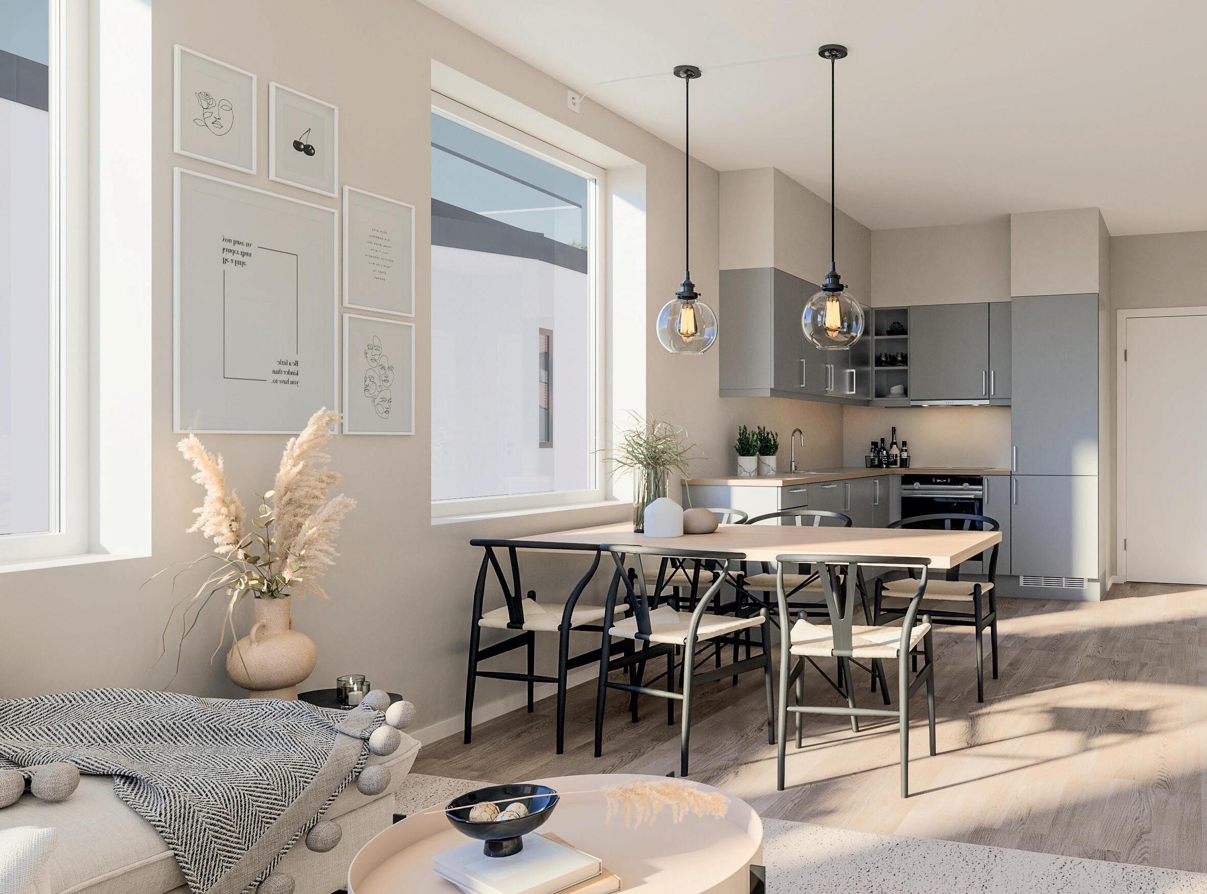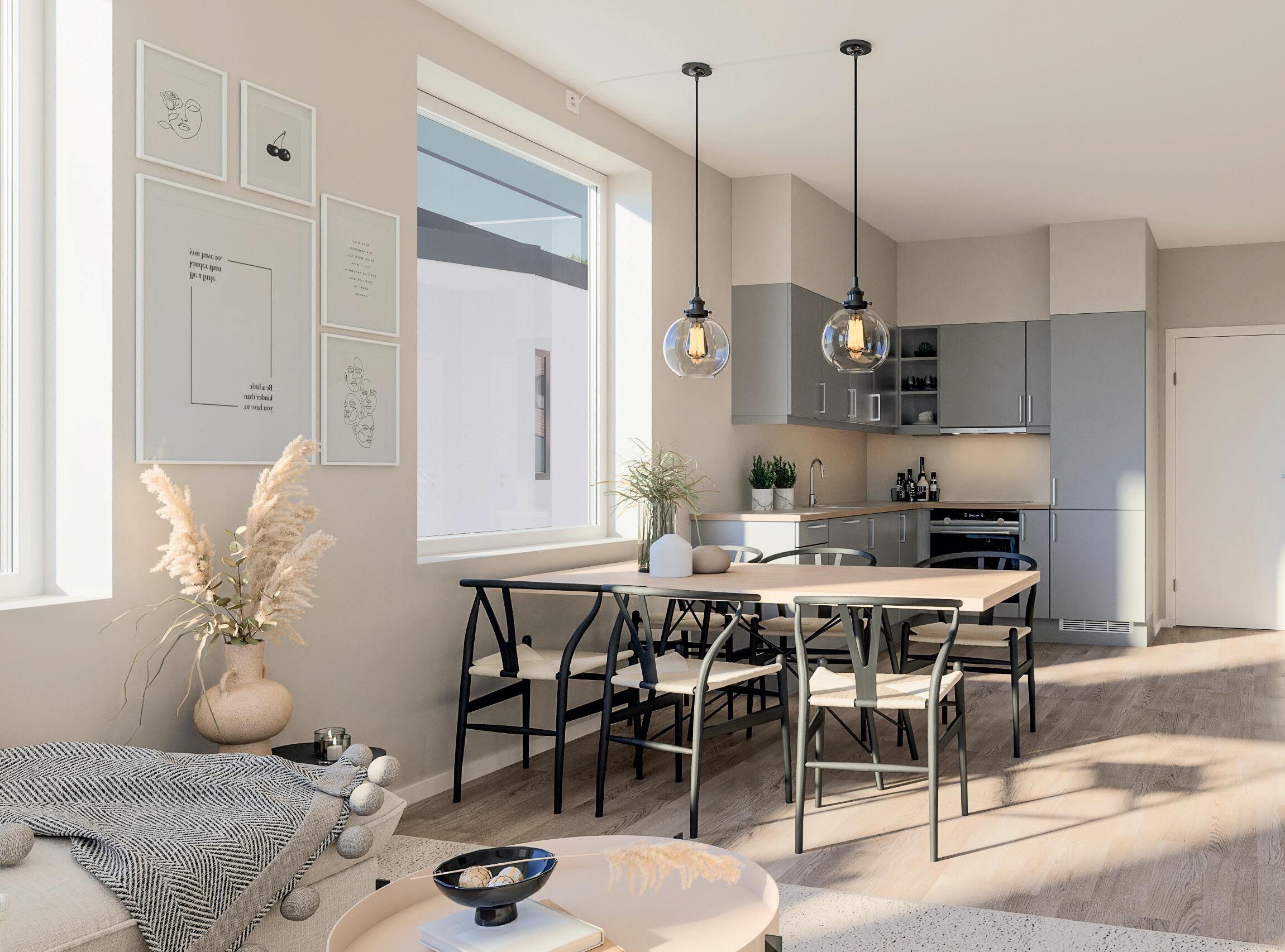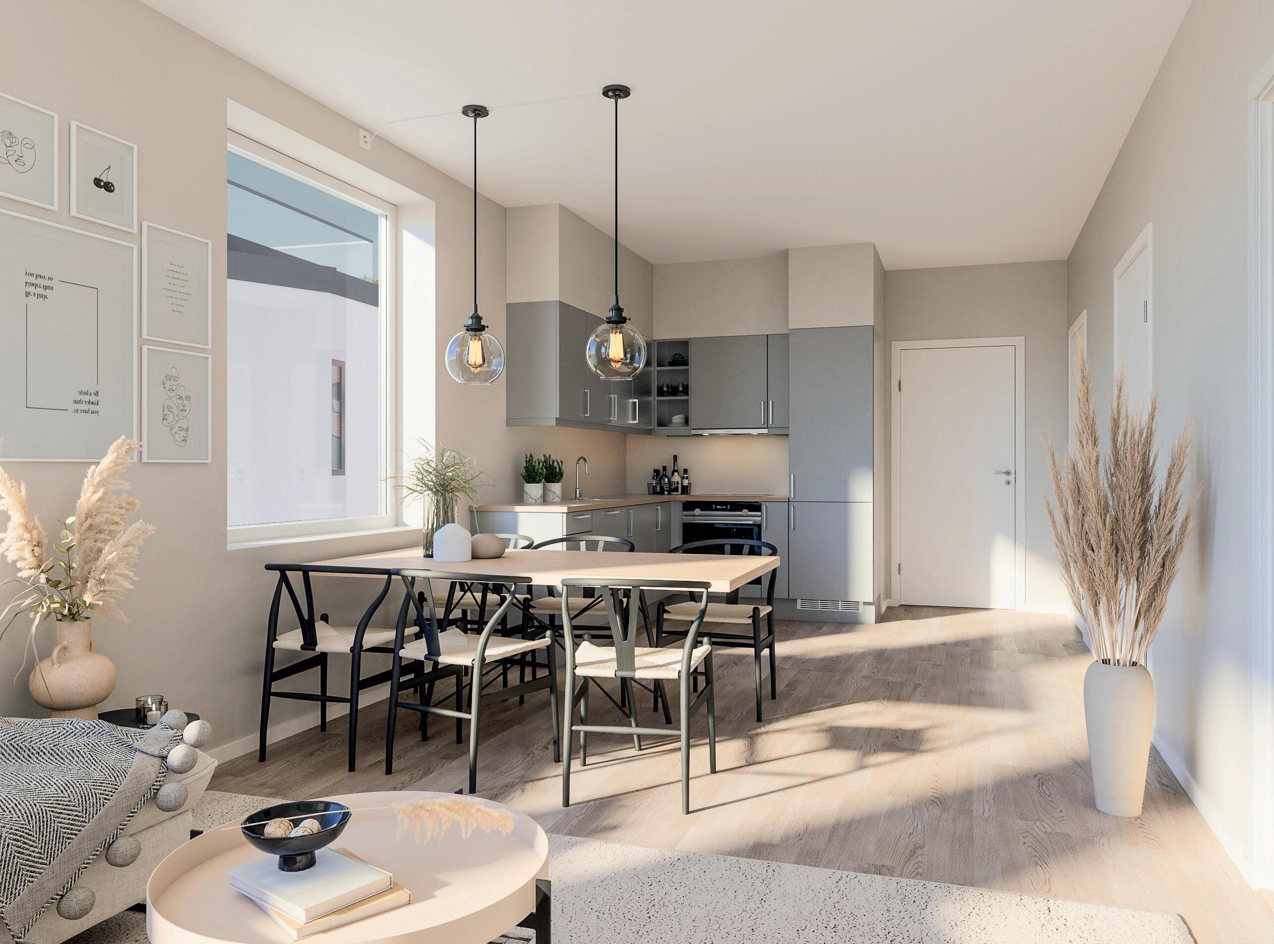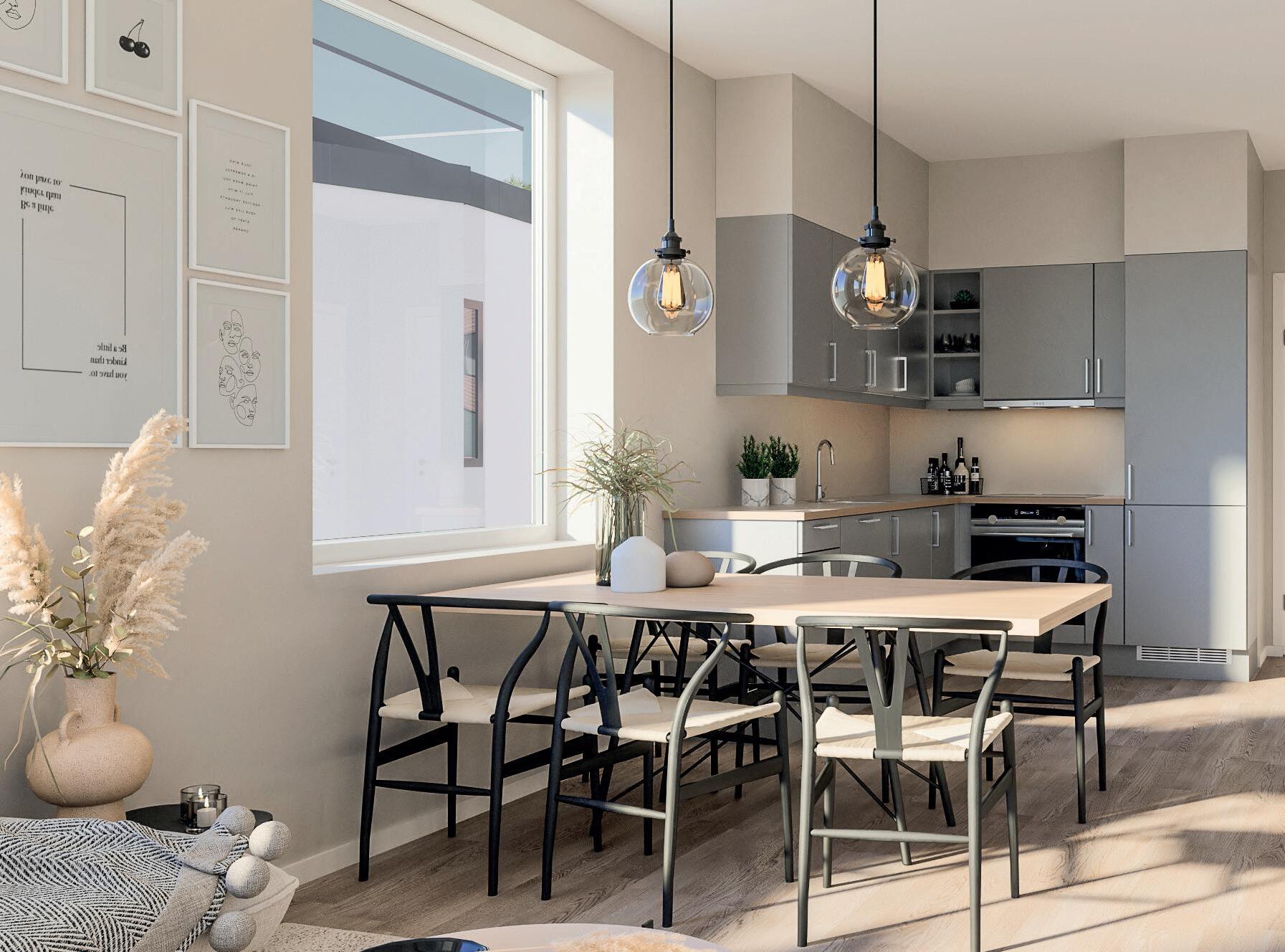 Alle bilder er av illustrativ karakter, endringer vil forekomme. Materialvalg og farger kan avvike og må evnt. bestilles som tilvalg om disse avviker fra standard leveranse angitt leveransebeskrivelsen vedlagt. Utsikt, balkongløsning, rekkverk og vindusløsning er kun illustrativ og vil variere fra etasje til etasje og bygg til bygg. Kjøkkenløsning kan avvike. Se etasjeplaner og kjøkkentegninger vedlagt i den komplette leveransebeskrivelse.