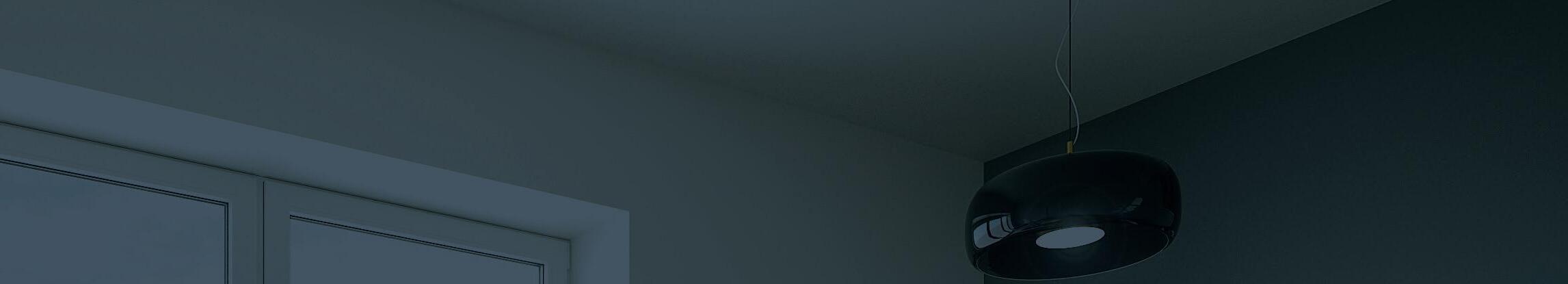 Lampe i tak med egen bryter. Strømskap og tv/dataskap på vegg.