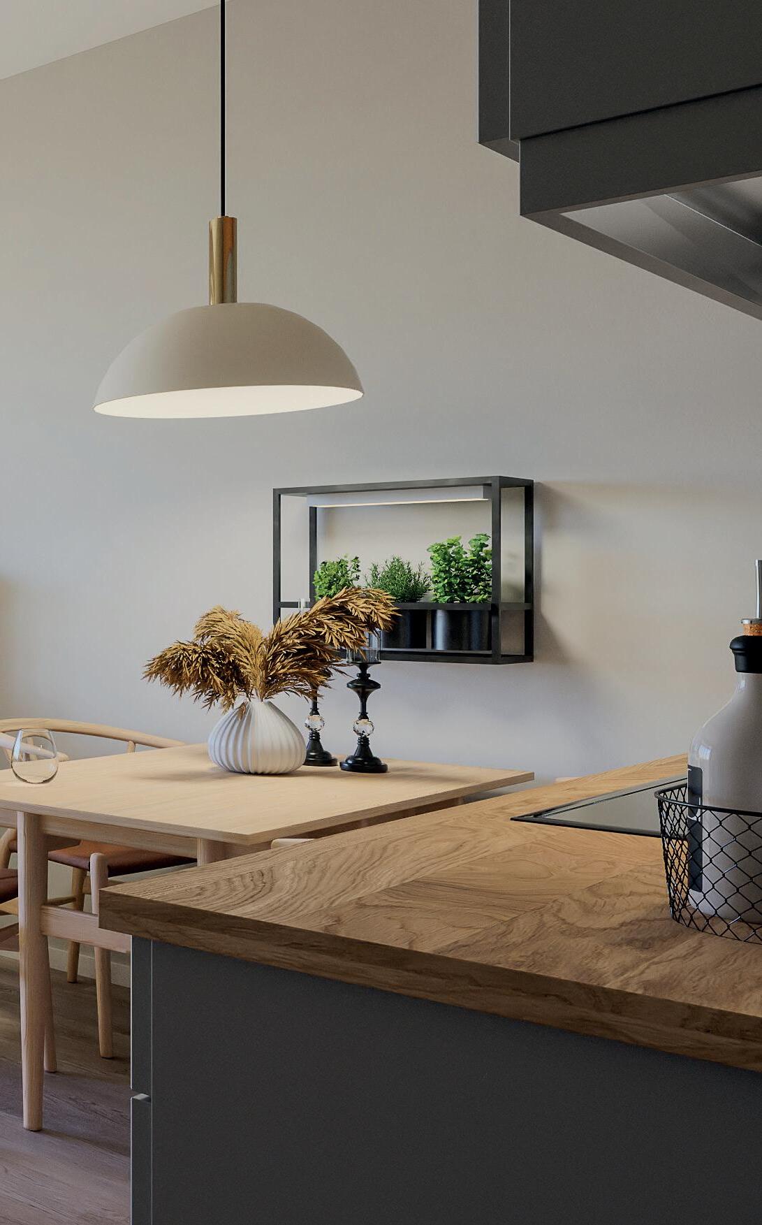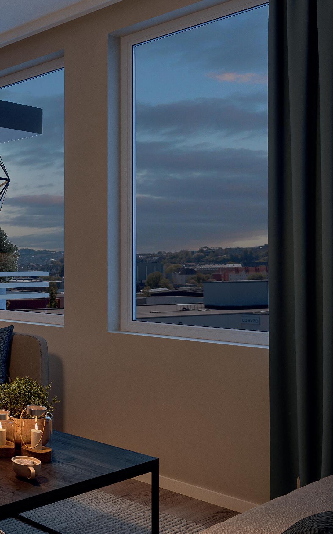 Alle bilder er av illustrativ karakter, endringer vil forekomme. Materialvalg og farger kan avvike og må evnt. bestilles som tilvalg om disse avviker fra standard leveranse angitt Utsikt, balkongløsning, rekkverk og vindusløsning er kun illustrativ og vil variere fra etasje til etasje og bygg til bygg. Kjøkkenløsning kan avvike. Se etasjeplaner og kjøkkentegninger