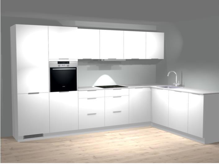 • Integrerte hvitevarer; ovn, kjøkkenvifte, induksjon platetopp, kjøl/fryseskap og oppvaskmaskin