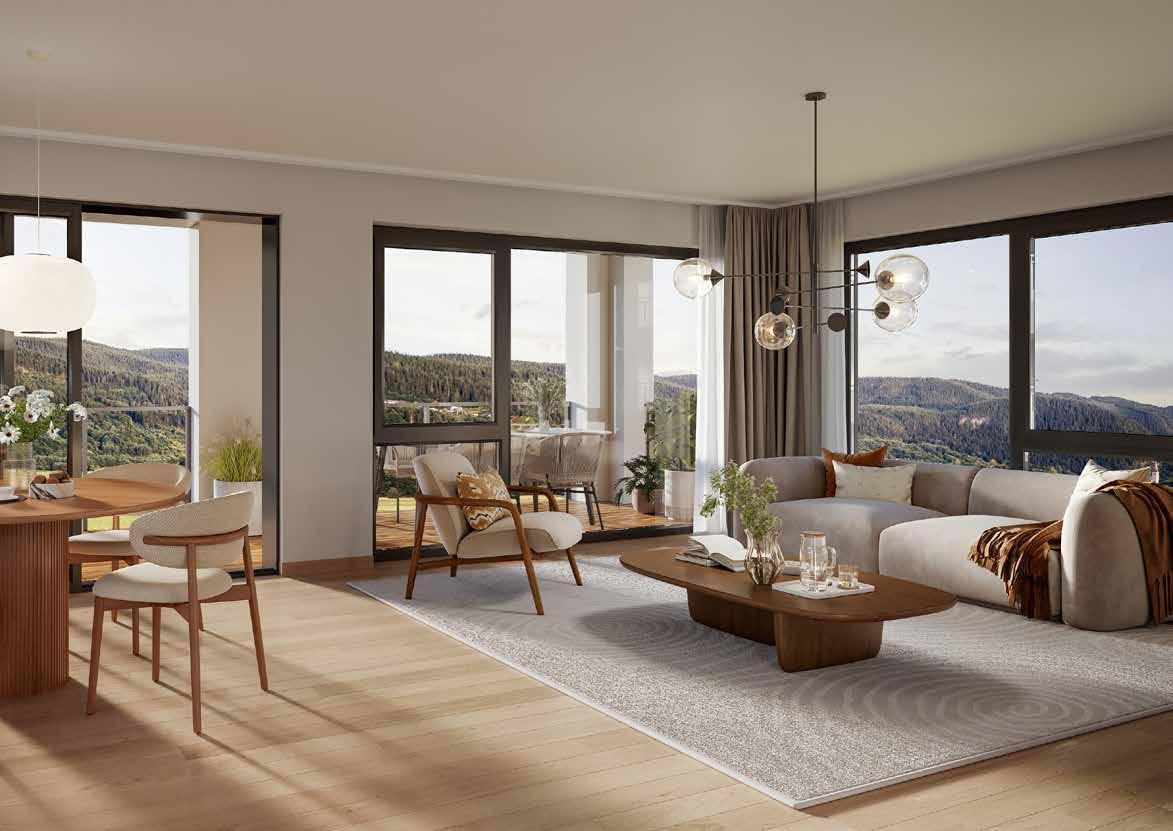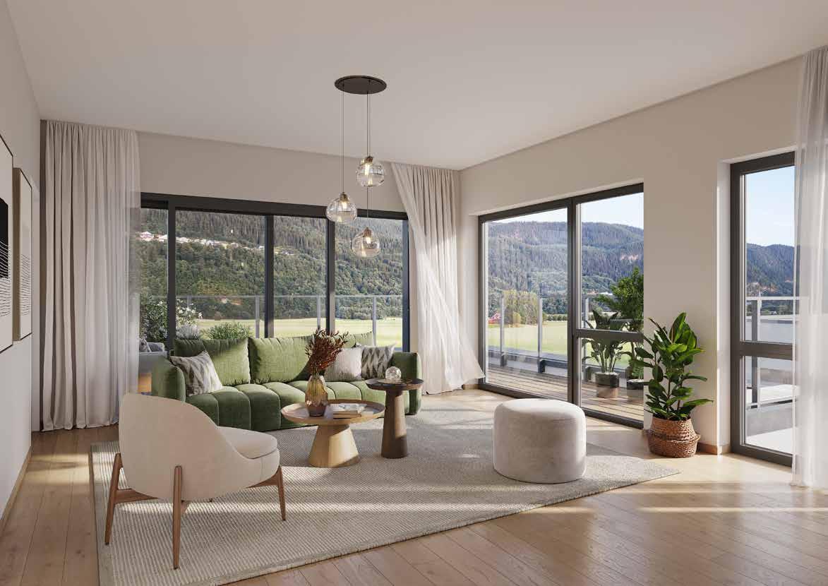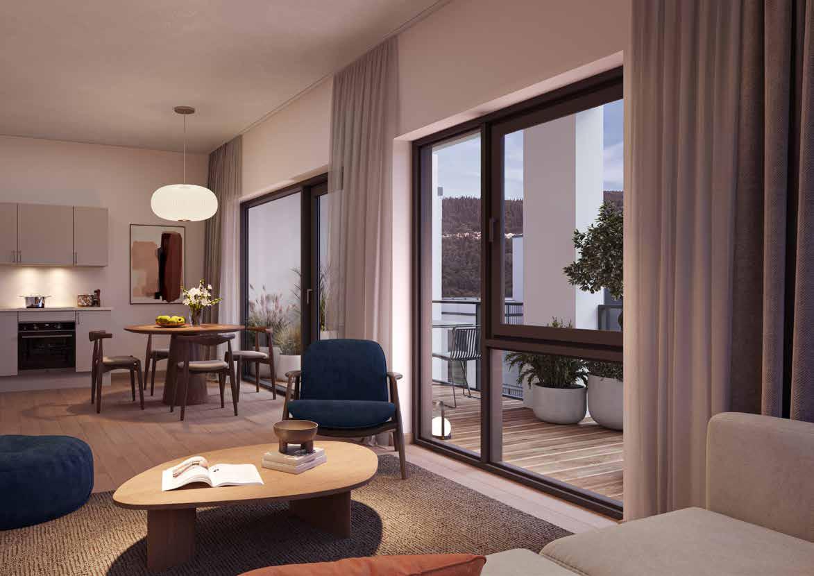 — Her skal det etableres nye boliger som får begge deler – både landlighet og umiddelbar nærhet til sentrum. Her kan du nyte dagene i ny og lettstelt leilighet med gjennomtenkte detaljer og god planløsning. I utformingen av leilighetene og balkongene blir det brukt materialer som skaper en hyggelig, lun og skjermet atmosfære.