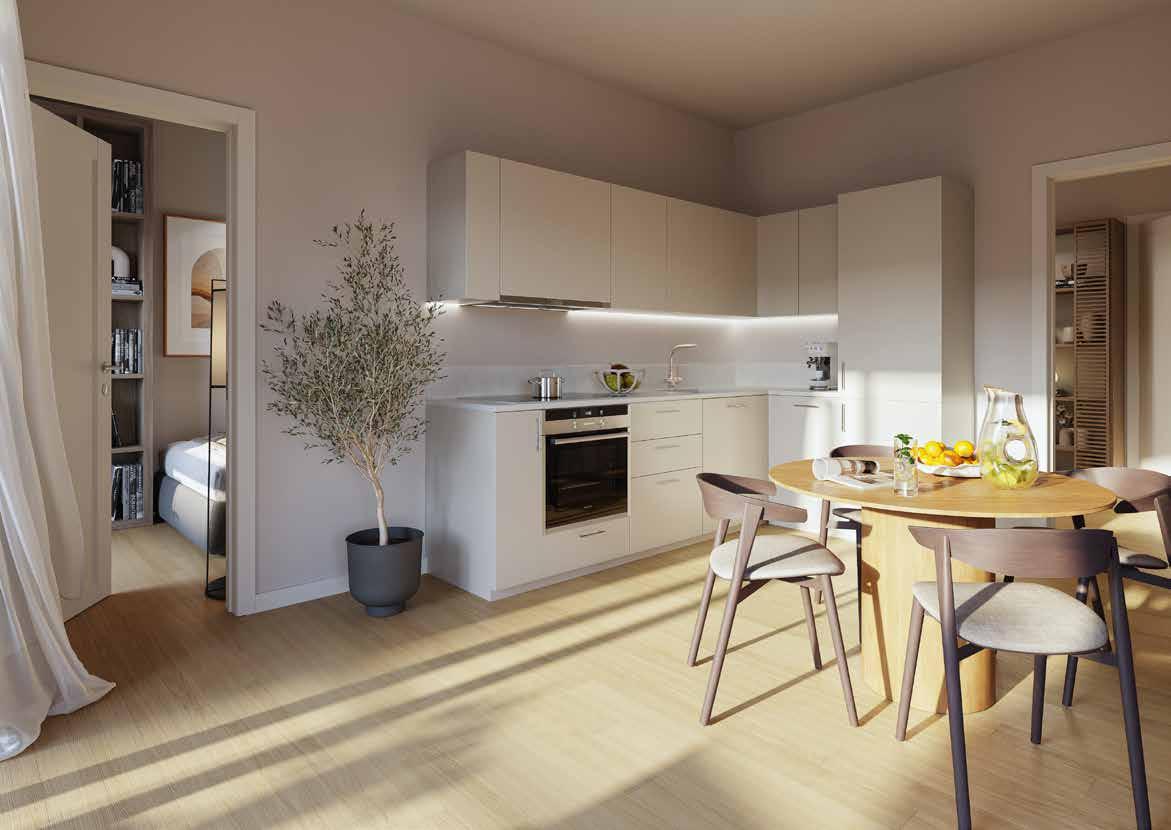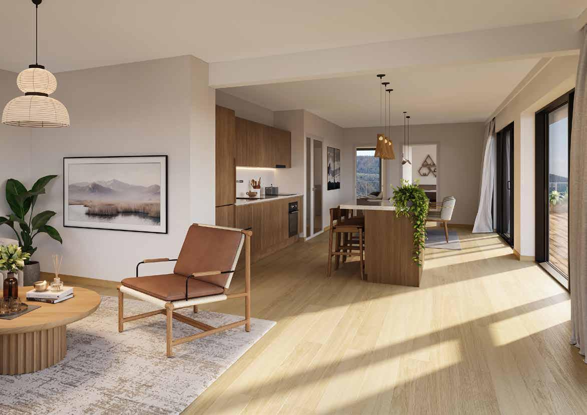 Alle bilder er av illustrativ karakter, endringer vil forekomme. Materialvalg og farger kan avvike og må eventuelt bestilles som tilvalg om disse avviker fra standard leveranse angitt leveransebeskrivelsen vedlagt. Utsikt, balkongløsning, rekkverk og vindusløsning er kun illustrativ og vil variere fra etasje til etasje og bygg til bygg. Kjøkkenløsning kan avvike. Se etasjeplaner og kjøkkentegninger vedlagt i den komplette leveransebeskrivelsen.