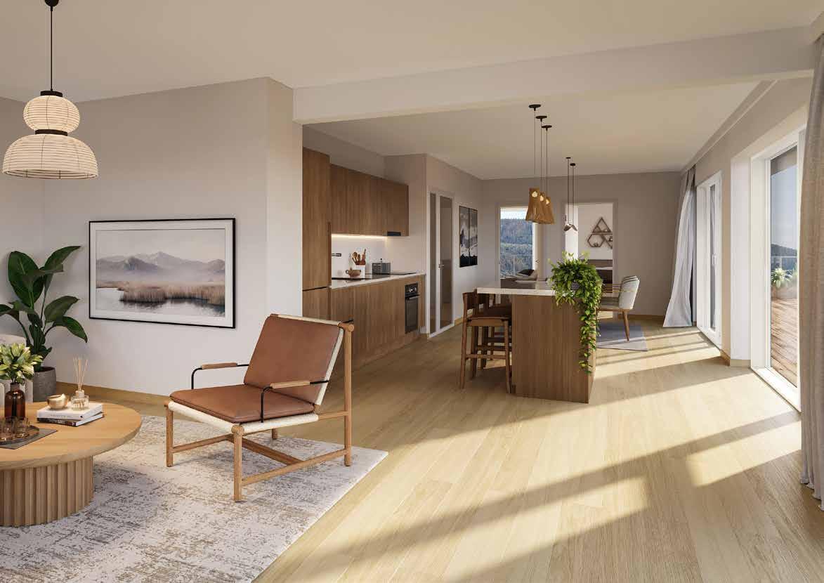 Alle bilder er av illustrativ karakter, endringer vil forekomme. Materialvalg og farger kan avvike og må eventuelt bestilles som tilvalg om disse avviker fra standard leveranse angitt leveransebeskrivelsen vedlagt. Utsikt, balkongløsning, rekkverk og vindusløsning er kun illustrativ og vil variere fra etasje til etasje og bygg til bygg. Kjøkkenløsning kan avvike. Se etasjeplaner og kjøkkentegninger vedlagt i den komplette leveransebeskrivelsen.