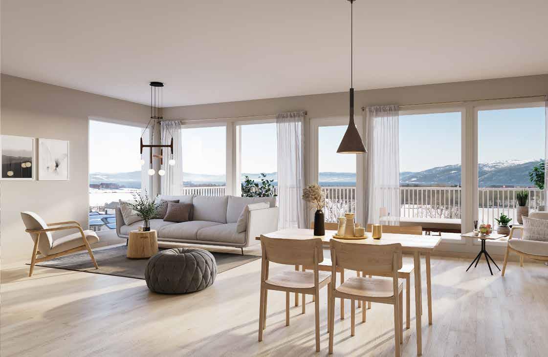 Store vindusflater gir en åpen og lys romfølelse. Flere av leilighetene har flott utsikt og gode solforhold.