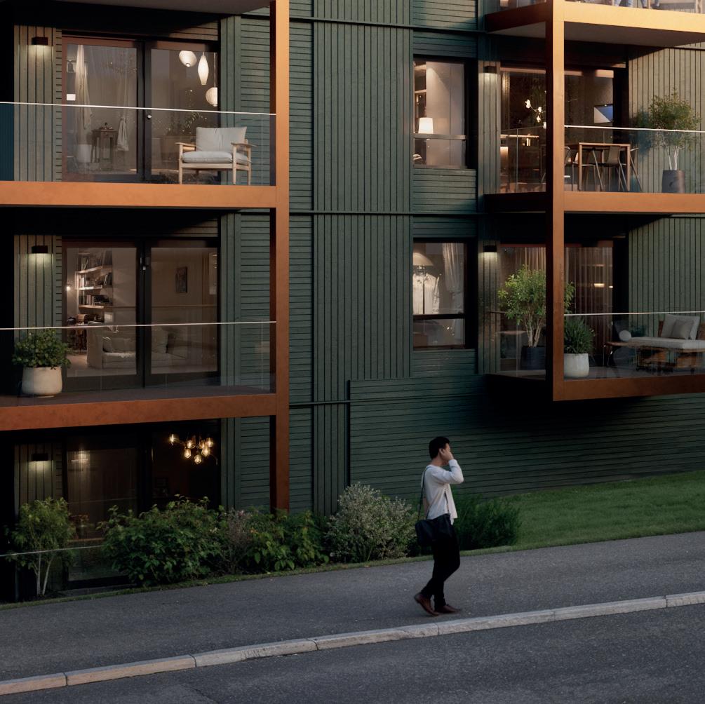 Våre boligområder skal alltid ha funksjonelle leiligheter i variert størrelse og attraktive fellesområder i god kontakt med omgivelsene. Vi henter inspirasjon til prosjektene i de omgivelser de skal bli en del av.