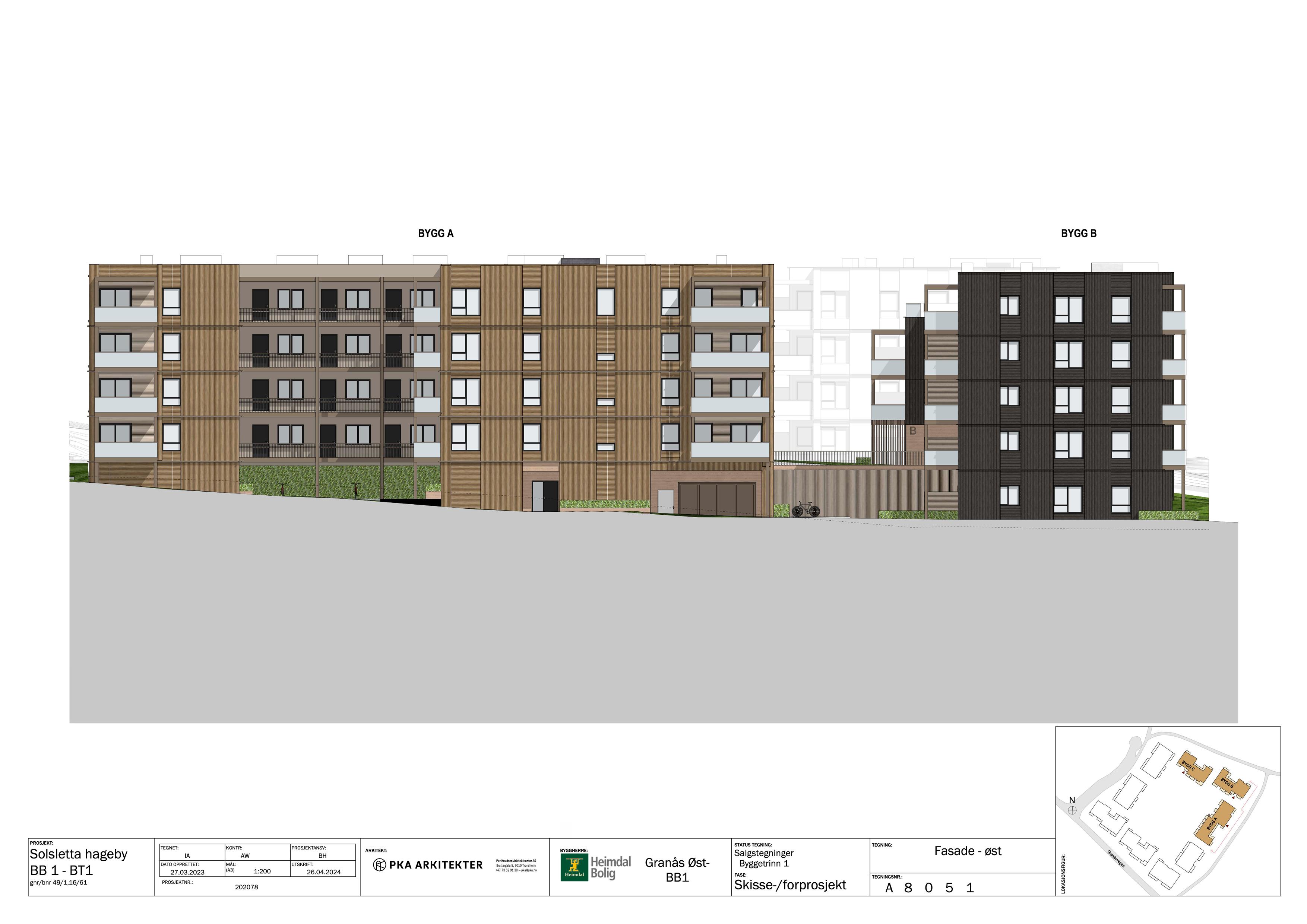 Sletten på Granås Øst har en fantastisk beliggenhet. Det er en solfylt slette med utsikt til sjø og skog. Sletten ligger høyt i terrenget og med utsikt til Trondheim by. Sletten skrår ned mot byen og det har vært viktig å tilpasse byggene til terrenget. De varierer i høyder fra tre til fem etasjer, som gir variasjon og gode solforhold inne i det store tunet.