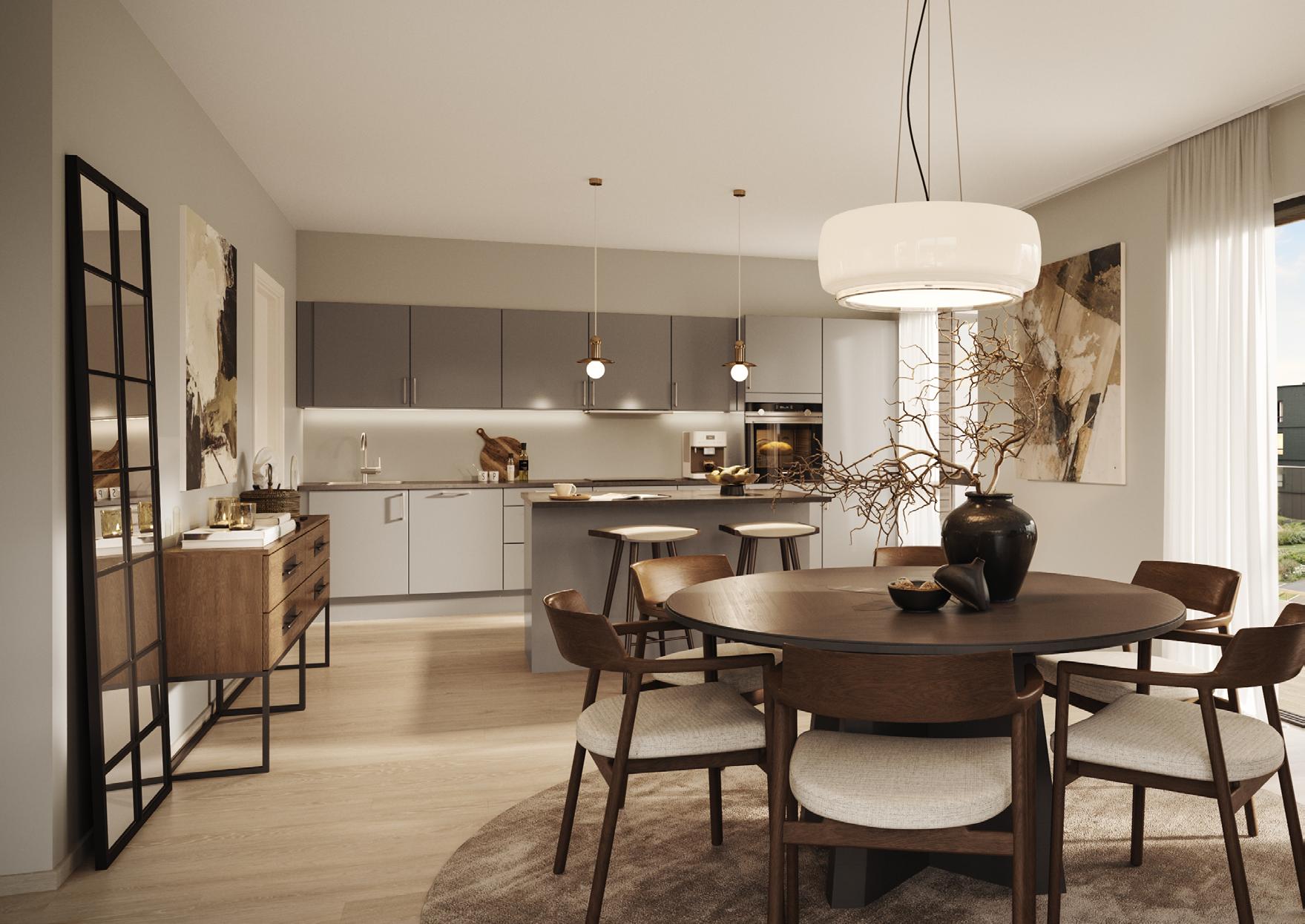 Det er stor variasjon i utforming av leilighetstypene, slik at leilighetene oppfyller et vidt spekter av behov hos kundene. Uansett størrelse på leilighetene har vi vært opptatt av bokvalitet med smarte og gode planløsninger, rom for fleksibilitet i møblering og ikke minst – godt med dagslys.