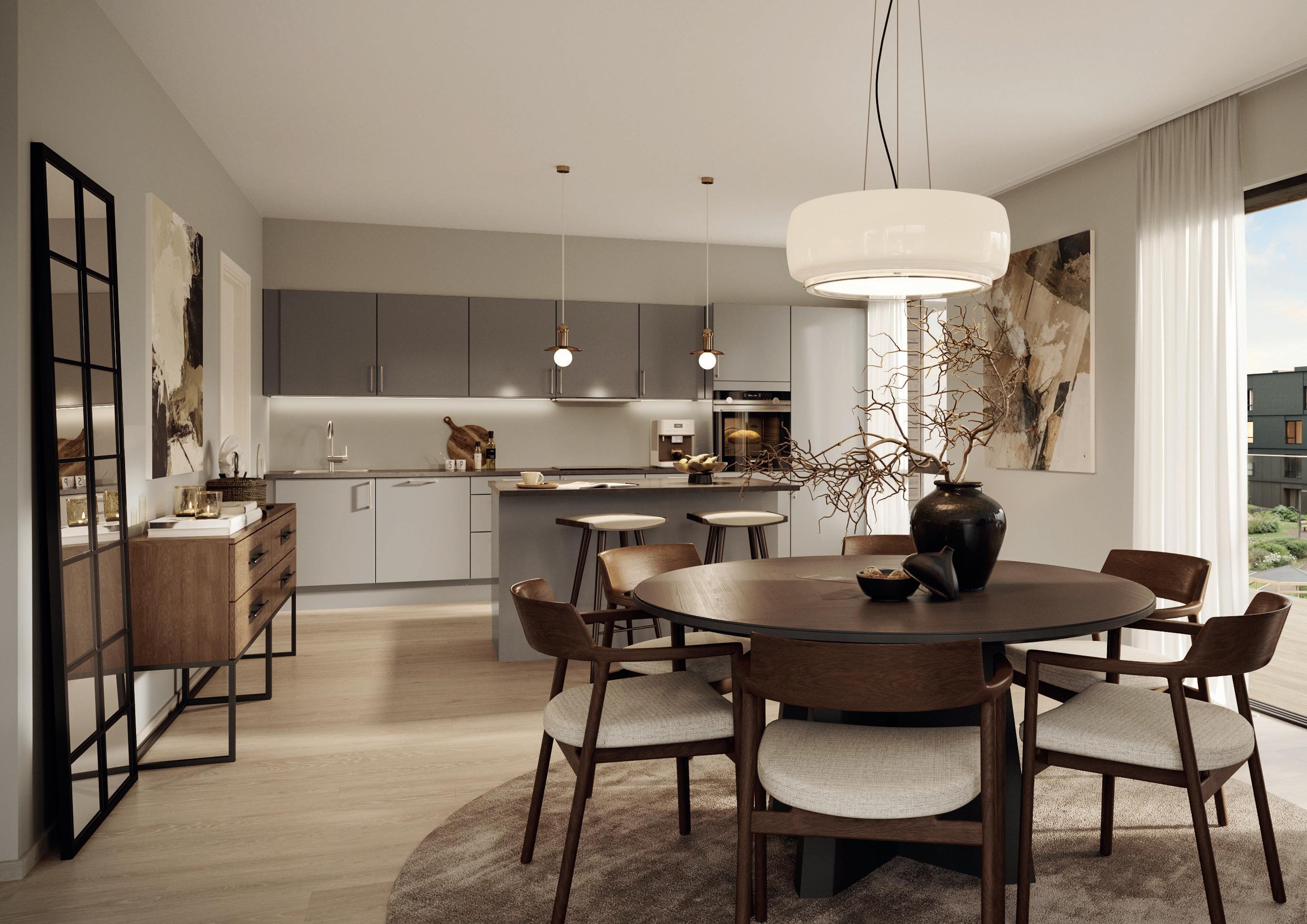Alle bilder er av illustrativ karakter, endringer vil forekomme. Materialvalg og farger kan avvike og må evnt. bestilles som tilvalg om disse avviker fra standard leveranse angitt i leveransebeskrivelsen vedlagt. Utsikt, balkongløsning, rekkverk og vindusløsning er kun illustrativ og vil variere fra etasje til etasje og bygg til bygg. Kjøkkenløsning kan avvike. Se etasjeplaner og kjøkkentegninger vedlagt i den komplette leveransebeskrivelse.