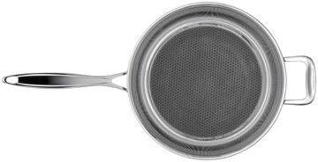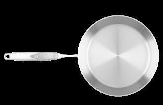 Steelsafe™ pans have a 3-ply steel structure with an aluminium heart, and a coating on the frying surface, which is protected by a patented steel honeycomb structure – making the pans extremely durable and easy to use! INNER SURFACE 0,6 MM / STAINLESS
