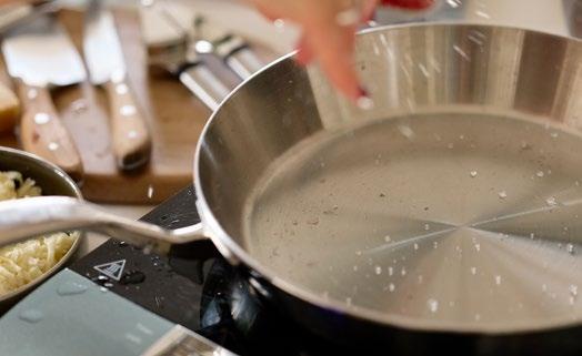 The Heritage Pro is suitable for use on all types of stoves, including induction, and is also oven-safe up to 260 °C , offering maximum versatility in the kitchen. Its durable steel surface allows the use of steel utensils without concern, while the solid steel handle with a long-lasting PVD coating provides a secure and comfortable grip during cooking.