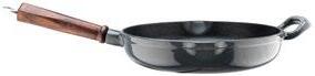 The stonewashed outside creates a gorgeous heritage look. The pan is made with a 3mm thick 3-ply structure with an aluminium heart. The pan will heat up evenly and reserve heat well.