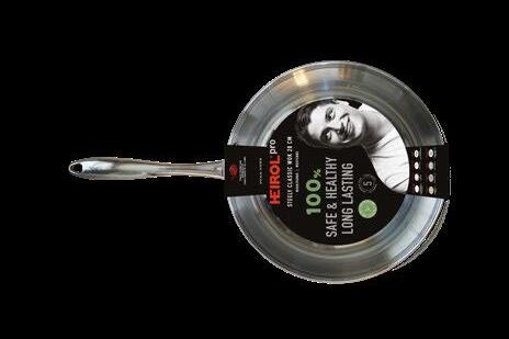 The new HEIROL Steely Classic Triply pans and pots have a triple layer body that heats efficiently and evenly. The ergonomic, stylishly designed handle is comfortable and makes the use effortless. The pan is suitable on all stoves, including induction, and the oven.