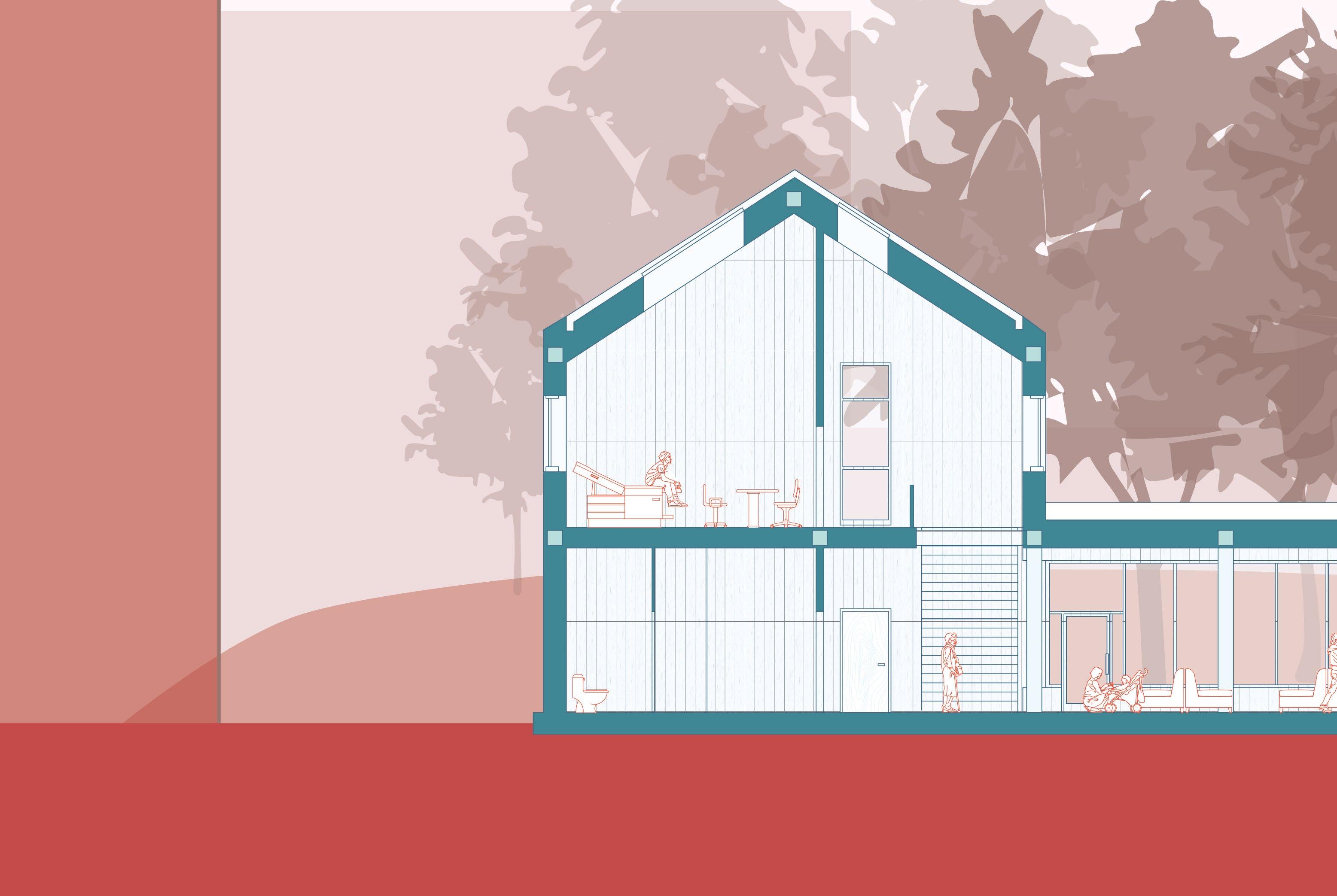 The impact of our recent pandemic has conditioned drastic changes in the routines of our communities. In an architectural context, the pandemic has asked the question, what would a space where work and living coincide resemble? With employees being prohibited from employing office spaces as their primary location for work, the dwellings of families became a space that had to support both the living and the working environments.