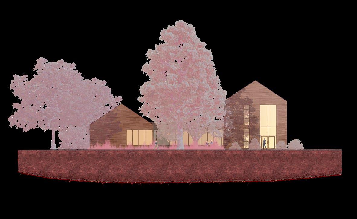 The building is cladded in Siberian Larch, a common choice of cladding in Europe as it is affordable and highly durable. The use of wood relates the structure with its site.