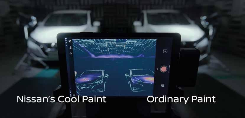 Denna oönskade soluppvärmning gjorde att Nissan inledde tester på några av sina biltyper som används på Haneda flygplats. Resultaten var ganska bra och temperaturerna inne i bilarna sjönk med upp till 12 grader. Dessutom är färgen mycket tunnare än konventionella färger och de har använts på byggnader under flera år. Nissan har dock fått fram den så att den kan sprayas på bilarna och inte med roller som på byggnader.