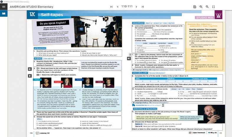 Teacher’s e-book+ version of the Student’s Book and Workbook for class presentation. You can use the software on an interactive whiteboard for face-toface classes or share your screen with students in virtual classrooms. The IWB keeps students engaged with materials, helps with lesson flow and promotes interaction, wherever you and your students are. Also available offline for selected titles.
