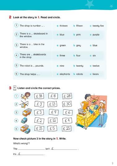 Before and After Reading activities pre-teach and practise words and structures and provide skills and pronunciation practice.