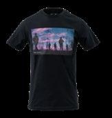 T-shirt z sylwetkami operatorów na tle zachodzącego słońca.