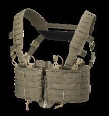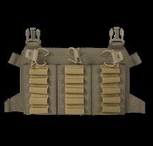 Dodatkowo, dzięki zastosowaniu przednich klamer, możliwe jest zamontowanie na plate carrierze jednego z naszych chest rigów, jak również licznych chest rigów dostępnych na rynku. Przednia, zapinana na zamek kieszeń ulokowana na wysokości klatki piersiowej z łatwością pomieści niewielkie przedmioty takie jak np. baterie, zatyczki do uszu, zdjęcia celu itp. Rzepy z przodu oraz z tyłu pozwalają na łatwą personalizację za pomocą patchy. Konstrukcja kamizelki uzupełniona została licznymi uchwytami stabilizującymi kable, anteny, rurki systemu hydracyjnego. Oprócz tego ma również dwa punkty montażowe dedykowane do przycisków PTT.