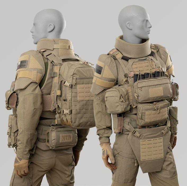 Wewnątrz przewidziano miejsce na prowadzenie kabli komunikacyjnych i rur hydracyjnych – zarówno przez kieszeń na płyty, jak i cummerbund. Kamizelka jest kompatybilna z całą gamą dodatkowych akcesoriów – jak np. Comms Wing, peryferia balistyczne czy Comfort Pad Set.