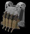 Plate Carrier ma wkomponowany w konstrukcję szczątkowy system modułowy z przodu oraz z tyłu. Dzięki licznym klapom, panelom plecowym oraz pasom cummerbund jesteś w stanie skonfigurować plate carriera odpowiadającego