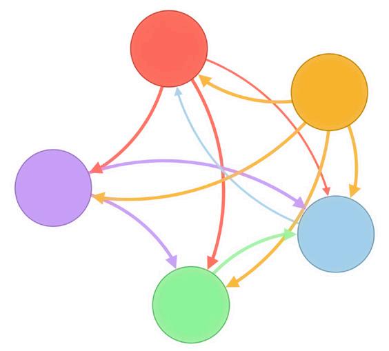 Figura 3. Mapa cognitivo difuso que representa las problemáticas prioritarias asociadas con las descargas agrícolas en el Golfo de California. Los nodos C1 a C5 corresponden a los conceptos principales del sistema y las flechas indican relaciones de causalidad. La letra A señala relaciones de causalidad alta (valor 0.9), y la letra M relaciones de causalidad media (valor 0.6). Cada nodo constituye una representación abstracta que sintetiza procesos complejos del sistema.