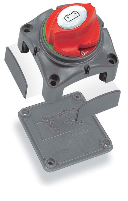 Contour Lock system with removable plates for connection from all sides. This allows the switch to be a stand alone unit or locked together with battery distribution modules. Necessary for on board systems fed from 2 or more batteries and whose supply comes from more than 1 generator. Rotary switch in 4 switch positions of battery 1-2-Both-OFF. Switch can also be pad locked. Suitable for surface or recess mounting by cutting an 85mm diameter hole.