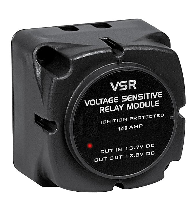 When the voltage drops below 12.8 volts (e.g. the engine is stopped), the VSR disengages, separating the batteries. This system eliminates the possibility of draining the start battery and protects sensitive electronic equipment powered from the auxiliary battery from harmful engine start up spikes.