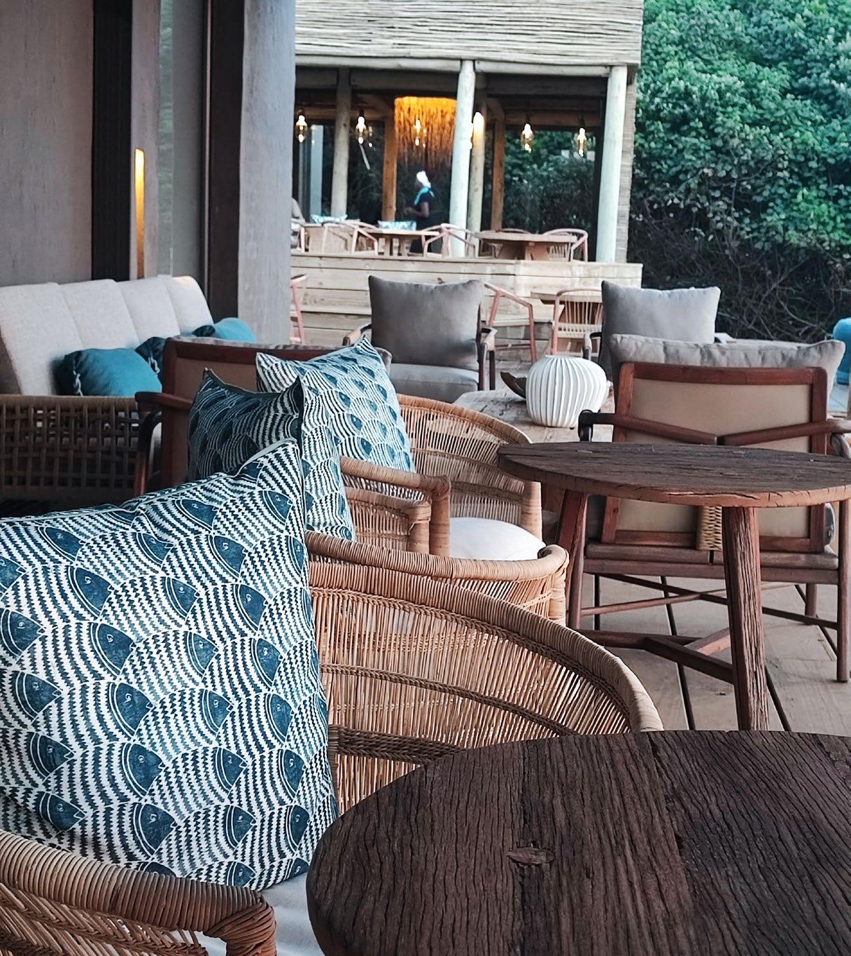 The lodge’s rooms – separate villas – all have ocean views, with the interiors boasting subtle décor elements inspired by the surrounding cultural communities. Raw additions like wood, woven basket light fittings and rammed earth walls feature all across the lodge and colour has been brought in with turquoise and white scatter cushions, throws and towels. Unique features, like a map of the Mkambati Nature Reserve and the coastline on the restroom wall, make for great conversation starters over a glass