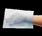 Disposable handwash mitten made of soft Molton non-woven fabric. Without waterproof barrier. Presoaped with neutral pH isocutaneous detergent, dermatologically tested and low foaming.
